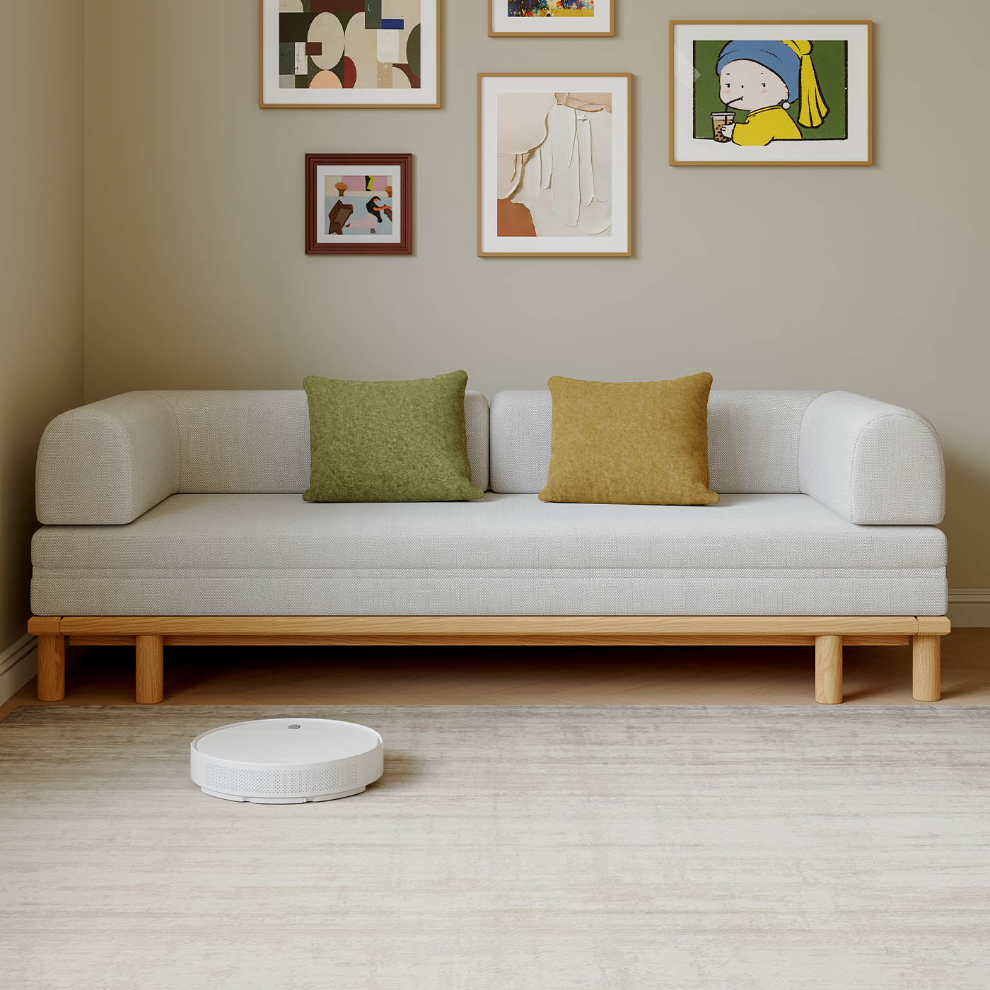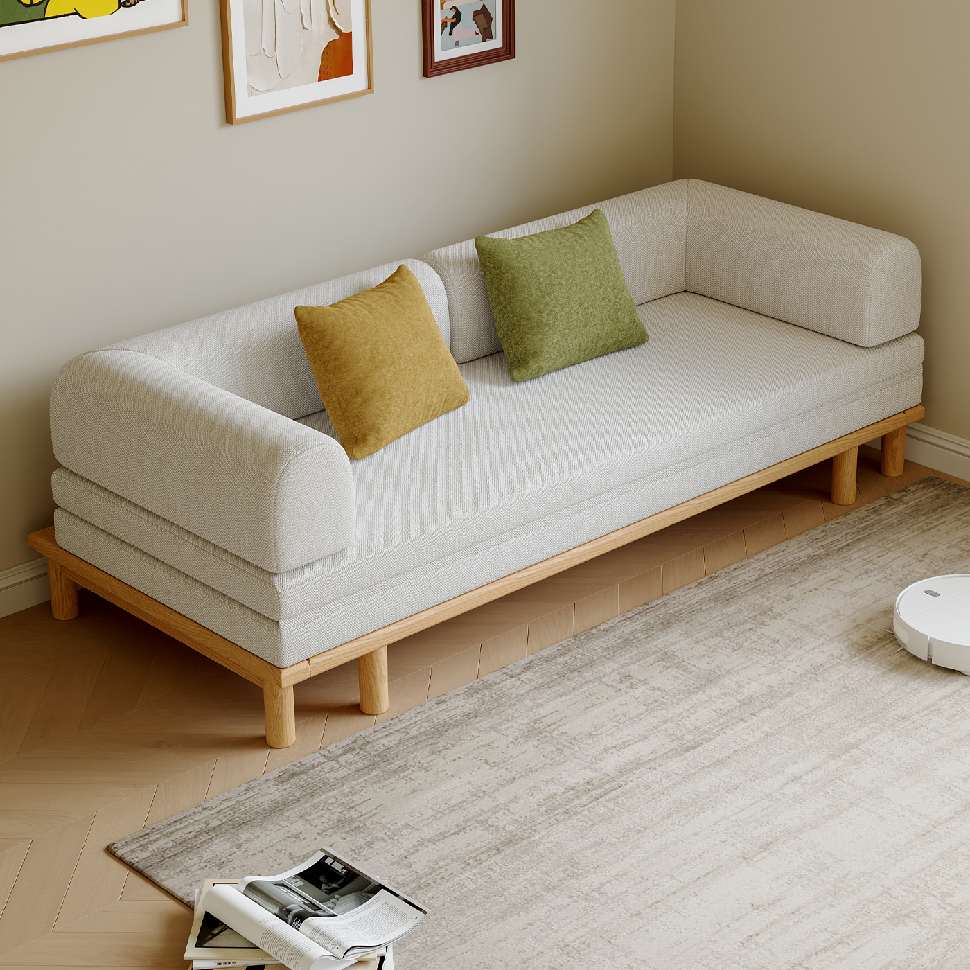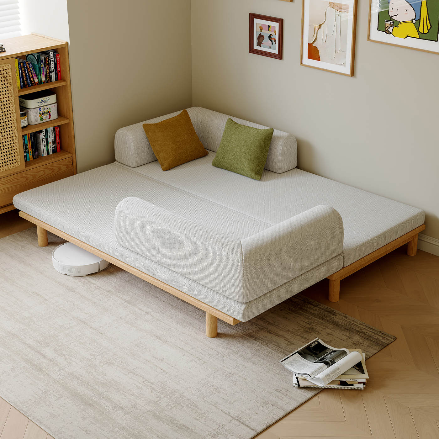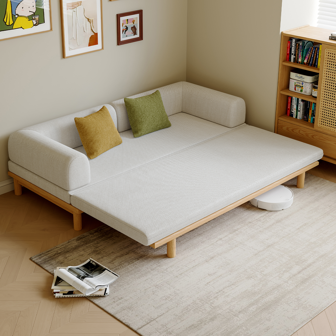 司朴原木奶油风白蜡木实木布艺沙发小户型客厅书房抽拉伸缩沙发床