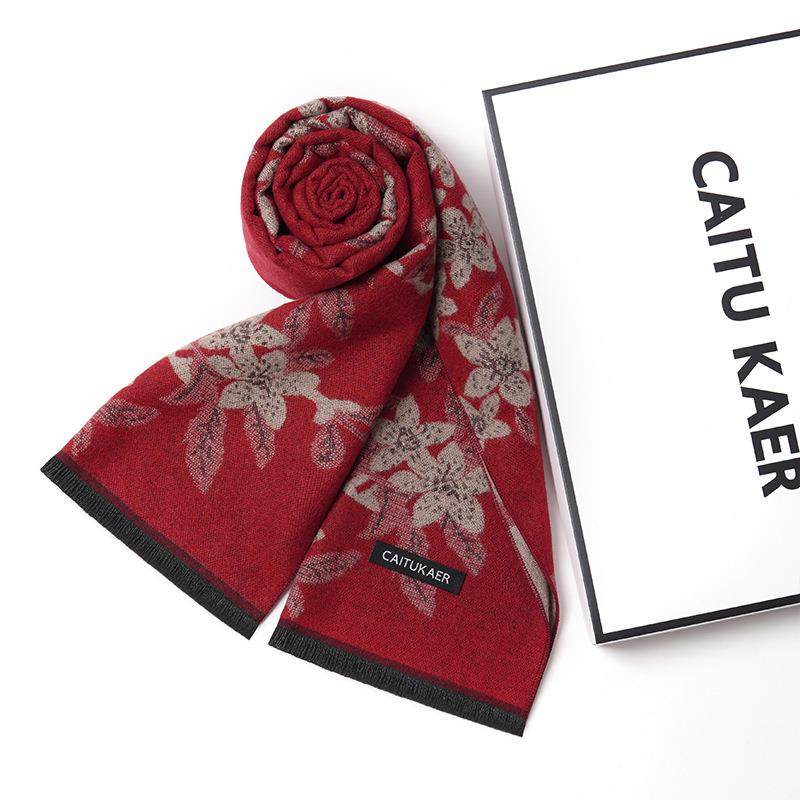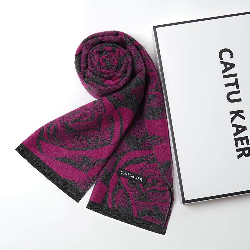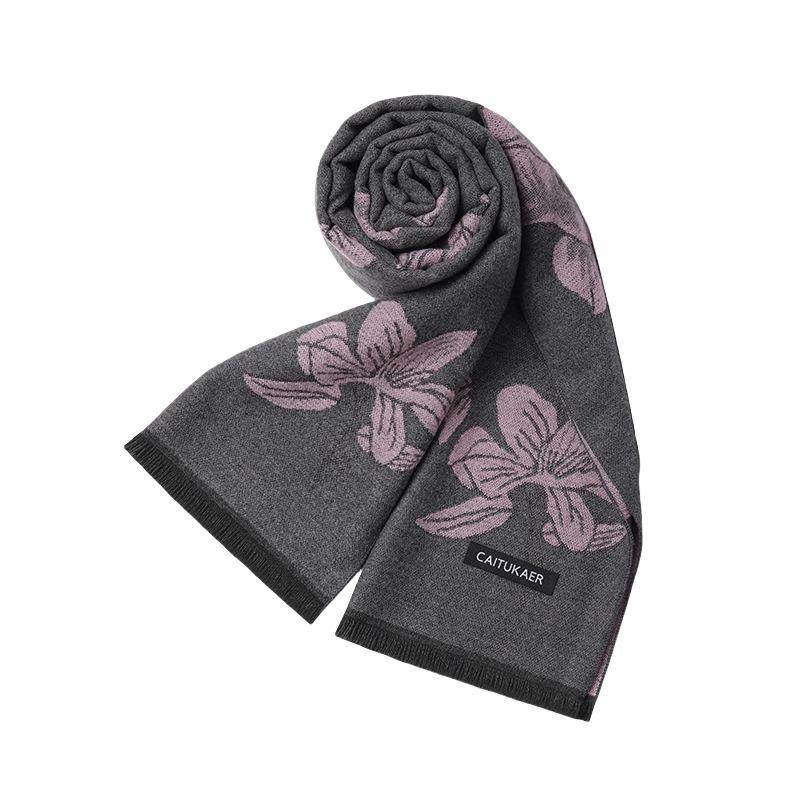 送妈妈围巾秋冬女士花朵百搭保暖老人奶奶礼物户外防寒长围脖生日