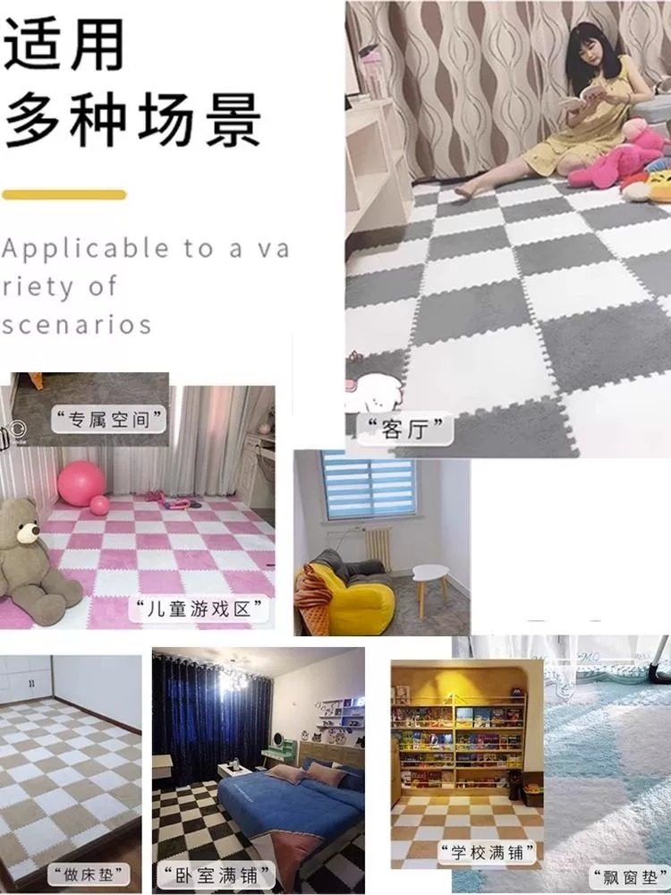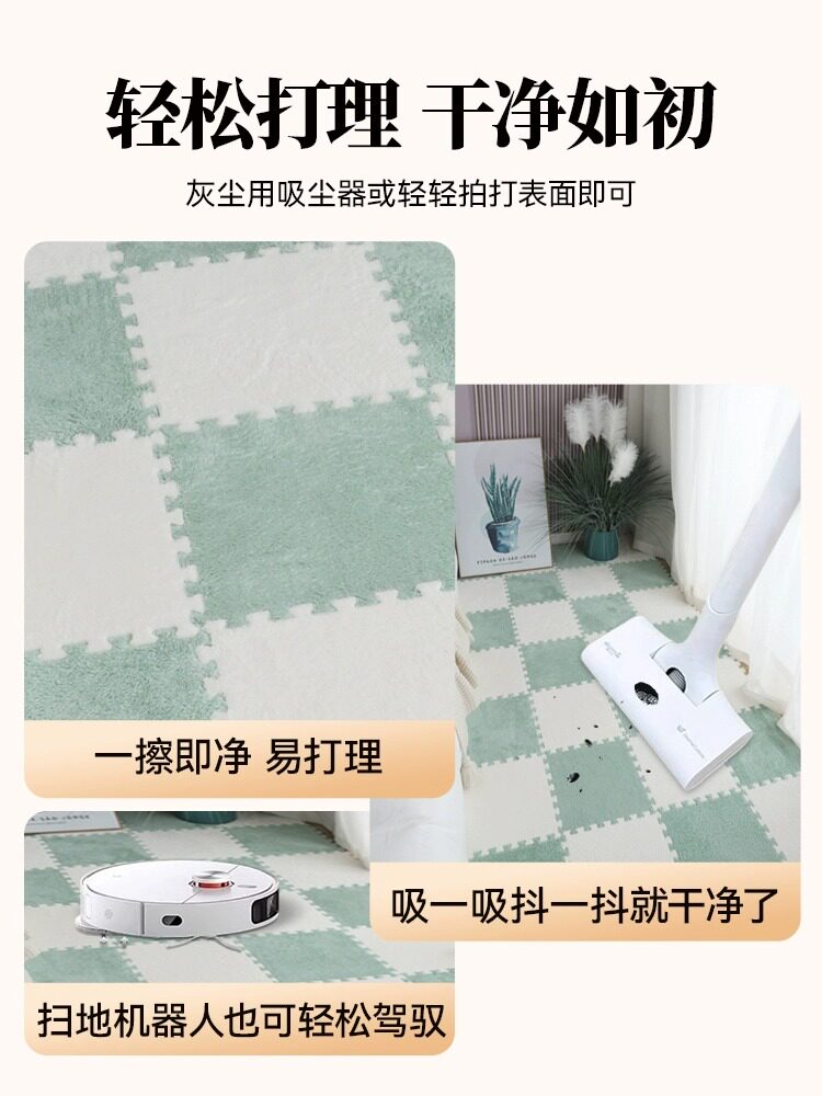 毛绒床边地毯卧室儿童房间全铺可裁剪泡沫拼接奶油风地垫少女客厅