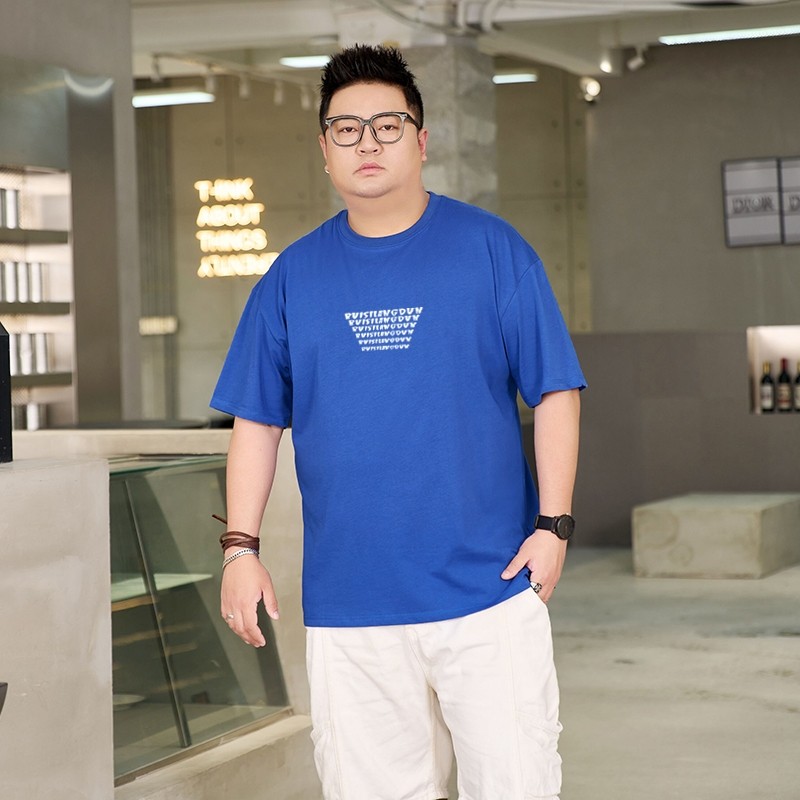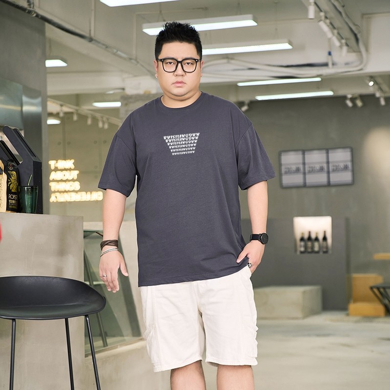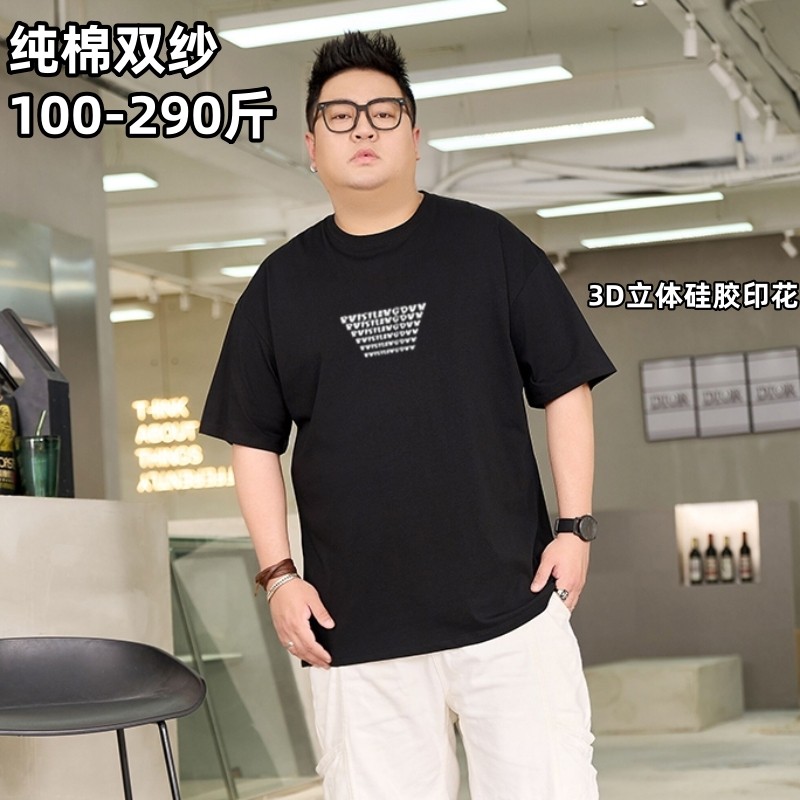 美式重磅纯棉双纱男短袖T恤 加肥加大码胖子宽松休闲打底潮流半袖