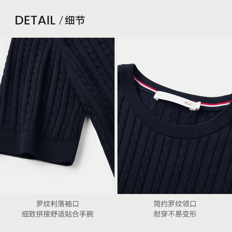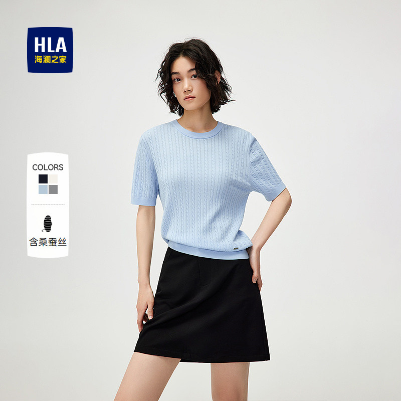 【含桑蚕丝】HLA/海澜之家轻薄短袖针织衫25春夏新款直筒毛衣女装
