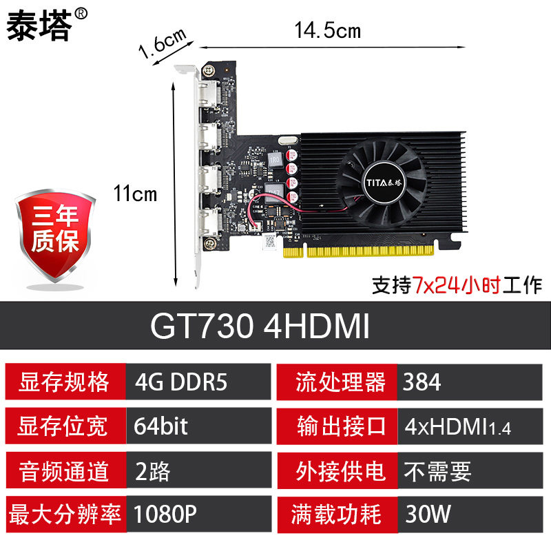 泰塔 GT730/750 4G 4HDMI 4屏多屏显卡 炒股监控投影分屏合屏拼接