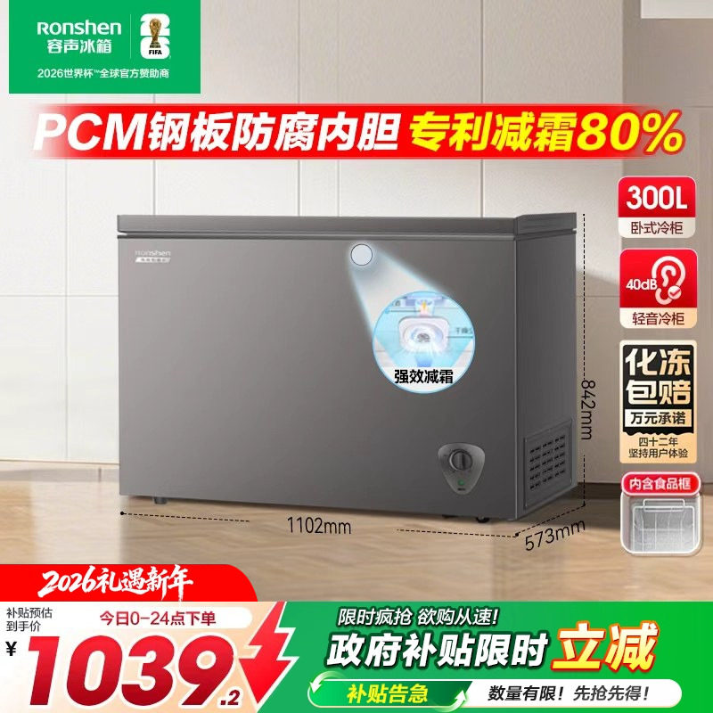 容声300L大容量减霜冰柜家用商用冷藏冷冻单温节能冷柜一级能效