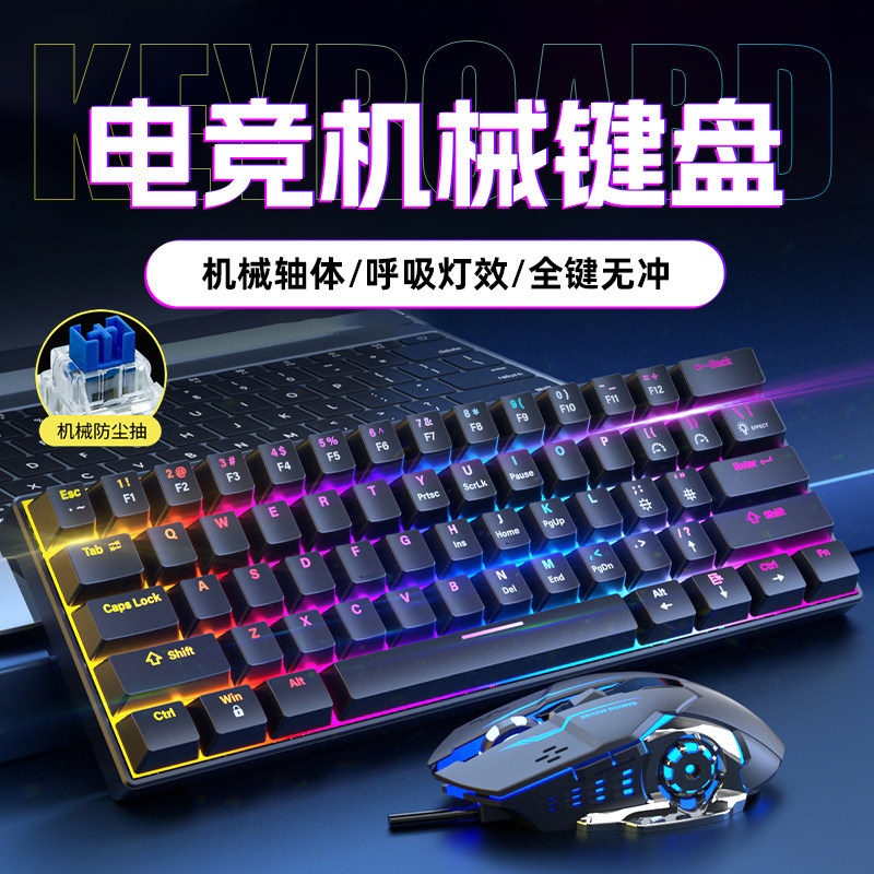 真机械键盘青轴电竞游戏专用鼠标套装有线台式电脑外设键鼠耳机
