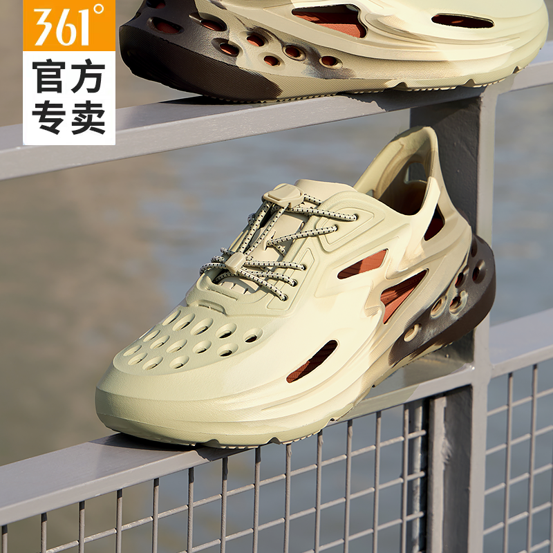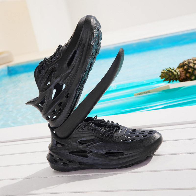 BIG3洞洞鞋361男鞋夏季透气运动鞋镂空溯溪鞋黑色软底沙滩凉拖鞋