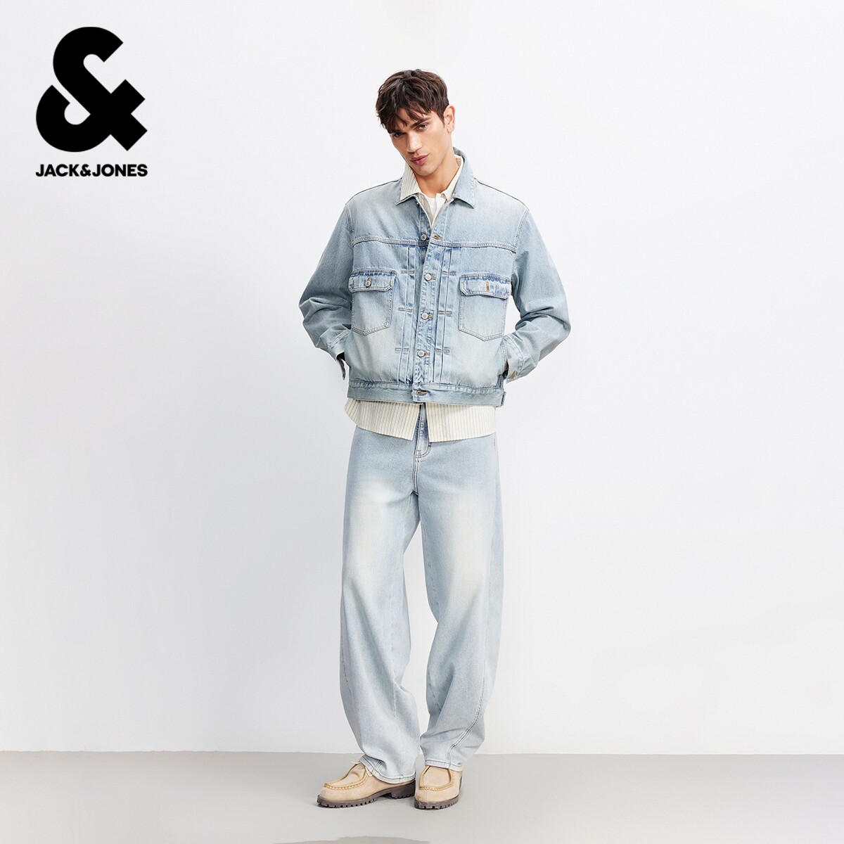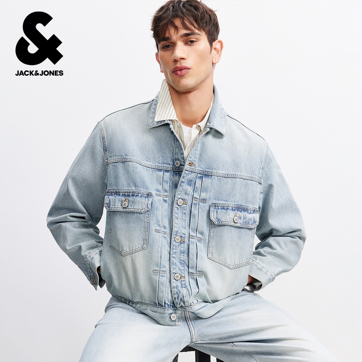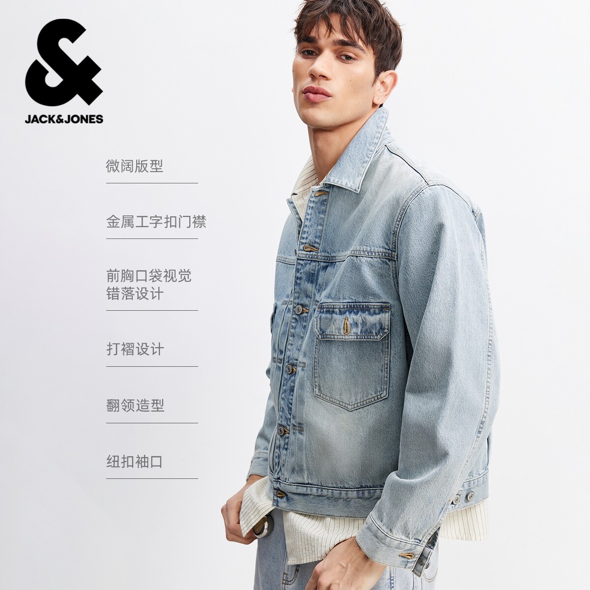 杰克琼斯奥特莱斯男装夹克春季新款潮硬挺有型翻领廓形牛仔外套