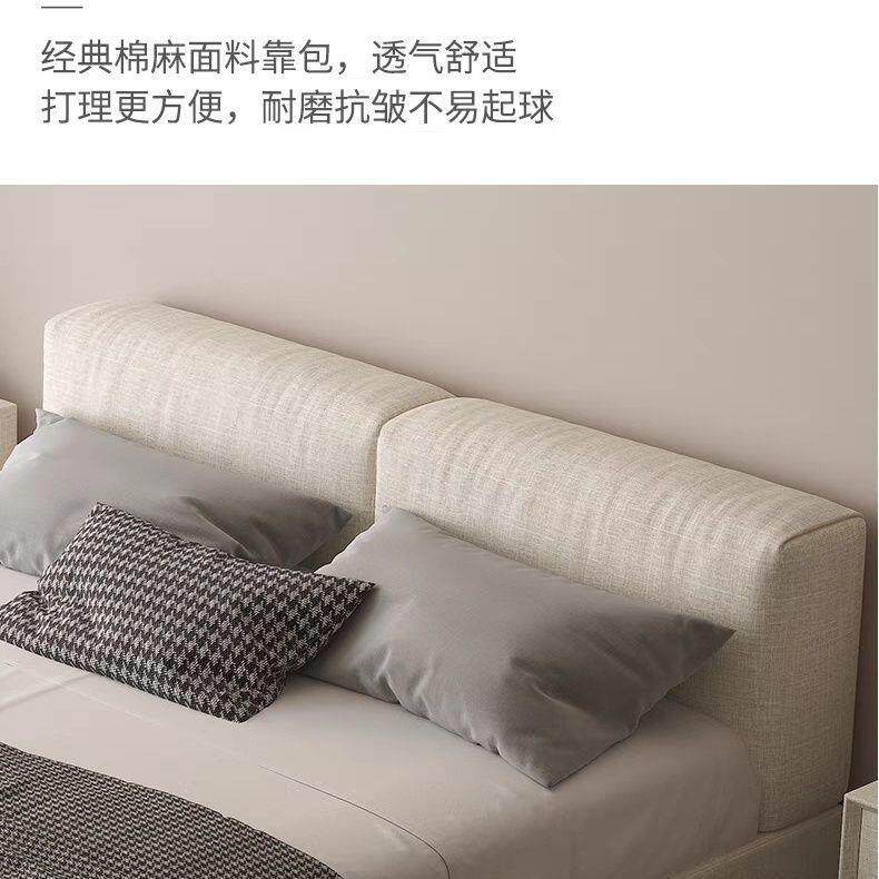 矮床头床棉麻布艺床双人床小户型婚床1.5米次卧床1.8米主卧白色
