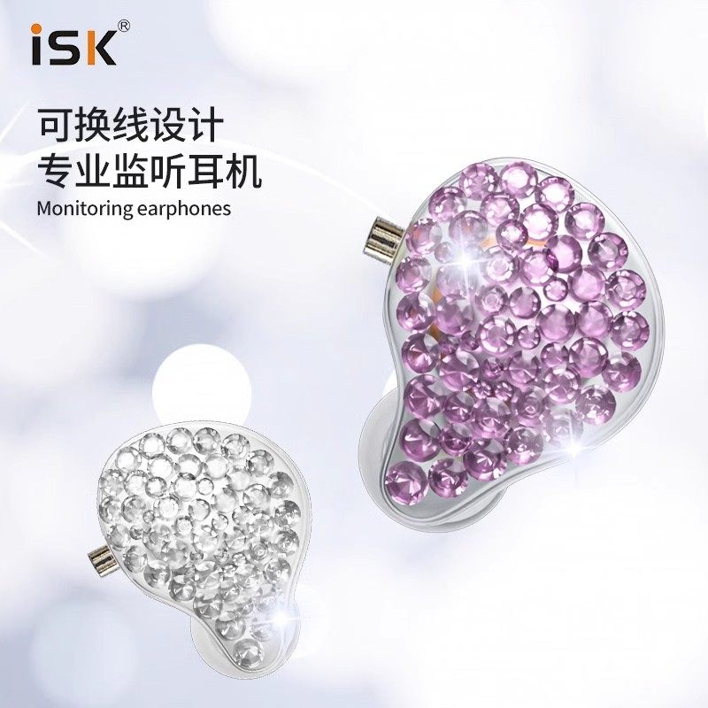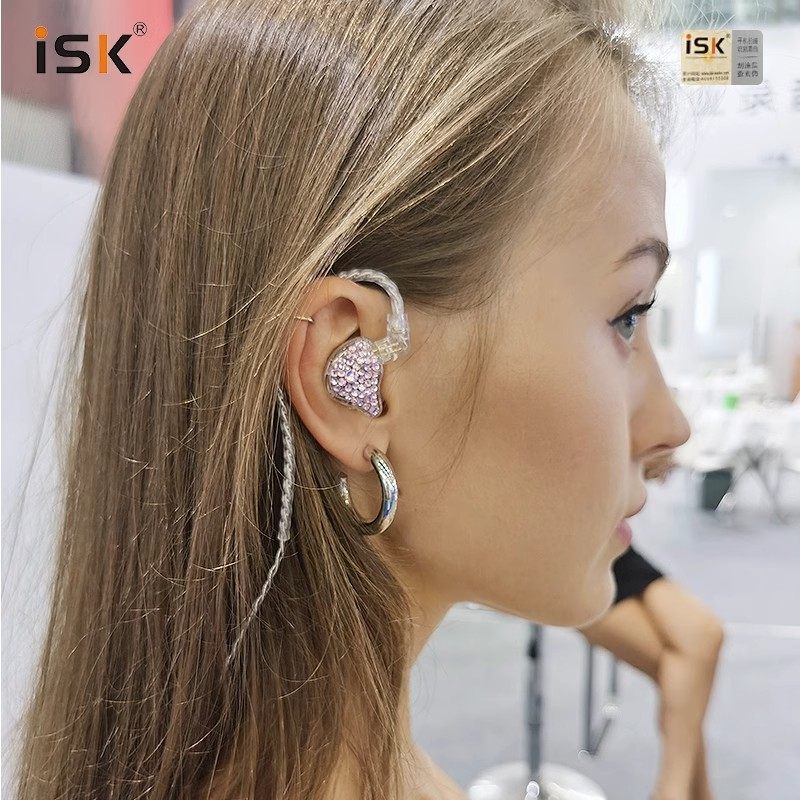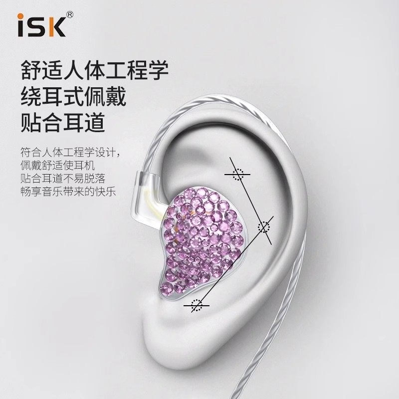 isk ES80直播监听耳机主播专用有线电脑声卡入耳挂耳式镶钻HIFI
