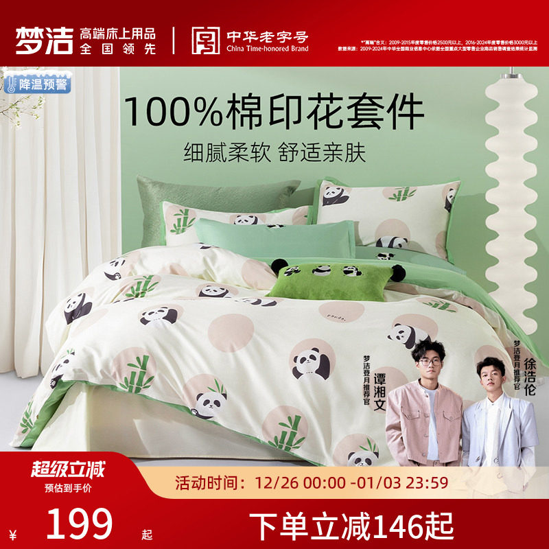梦洁家纺床上三四件套纯棉100全棉2025新款四季通用床单被套床品