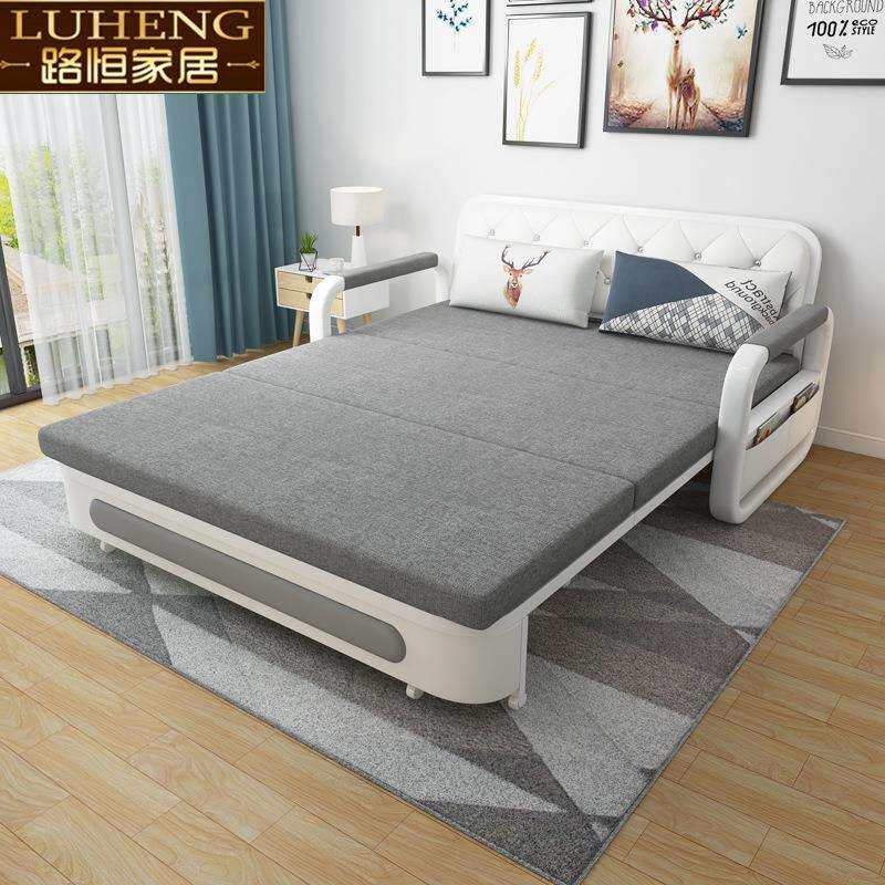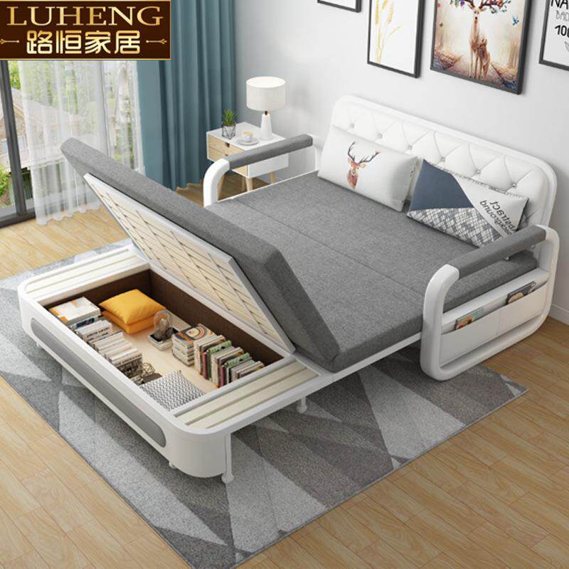 多功能沙发床现代简约小户型公寓办公室折叠储物铁艺布艺沙发床