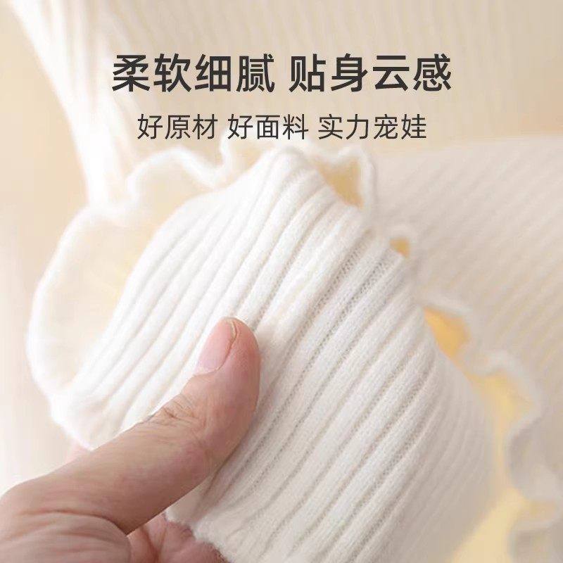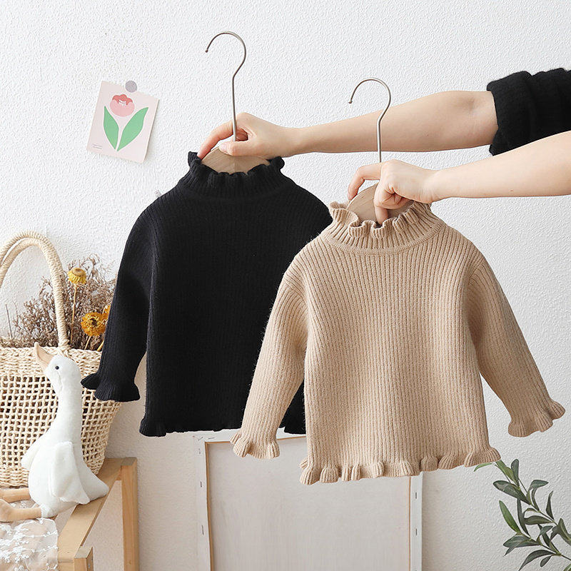 婧麒绒女童毛衣春秋宝宝木耳边内搭儿童针织打底衫春装加绒黑色