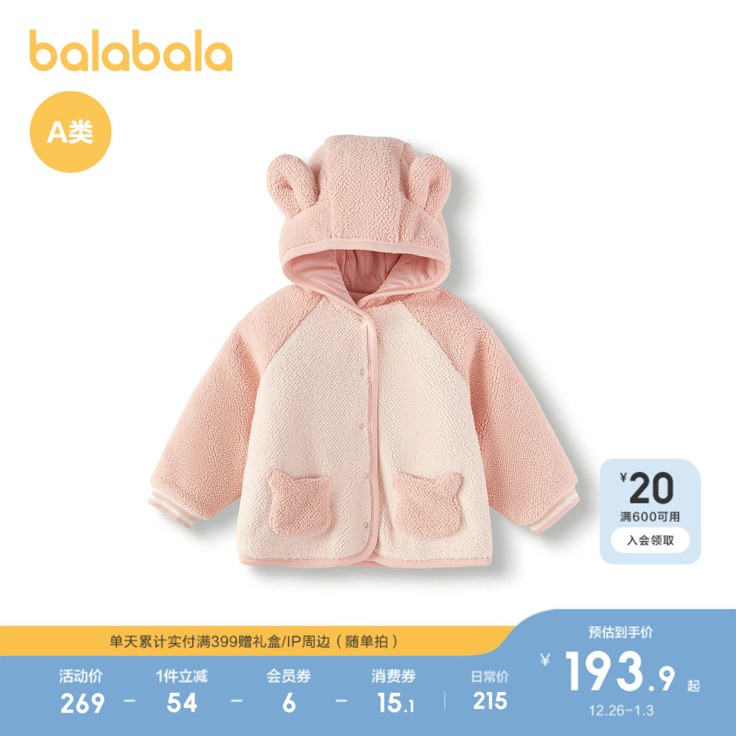 【商场同款】巴拉巴拉童装宝宝外套儿童秋冬装2025新款男女童棉服