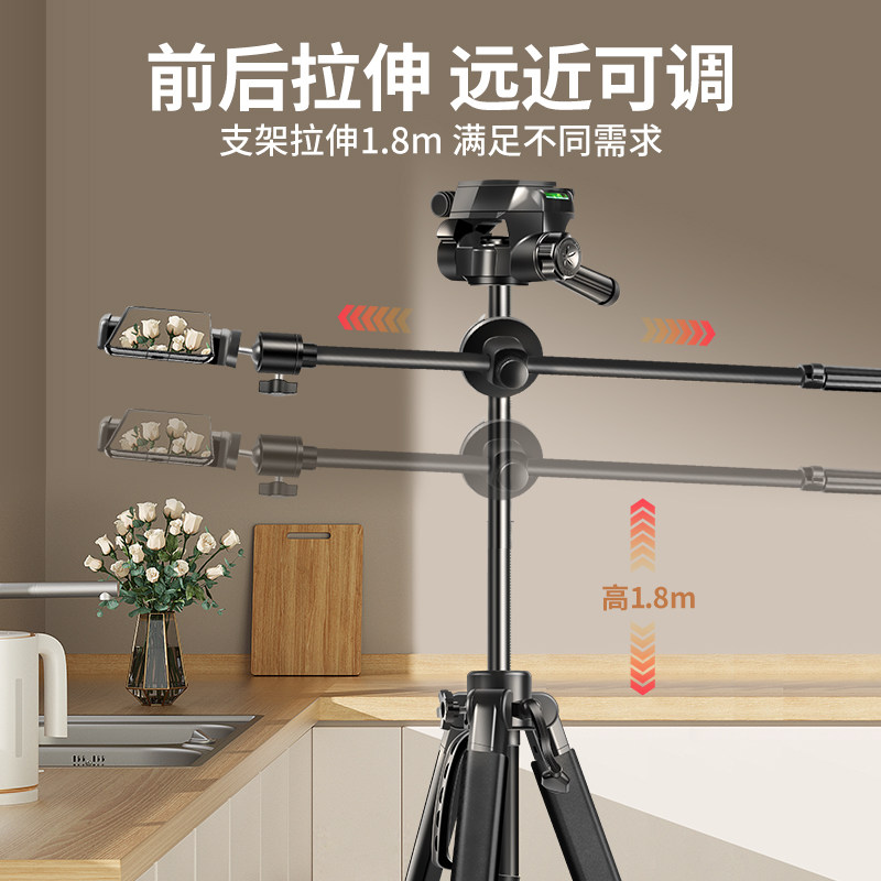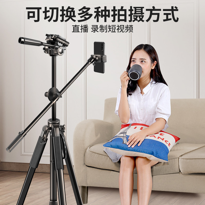 手机拍摄支架直播专用自拍杆三脚架落地式多功能支撑架通用捭机架户外便携伸缩升降网课考研复试架子三角支夹