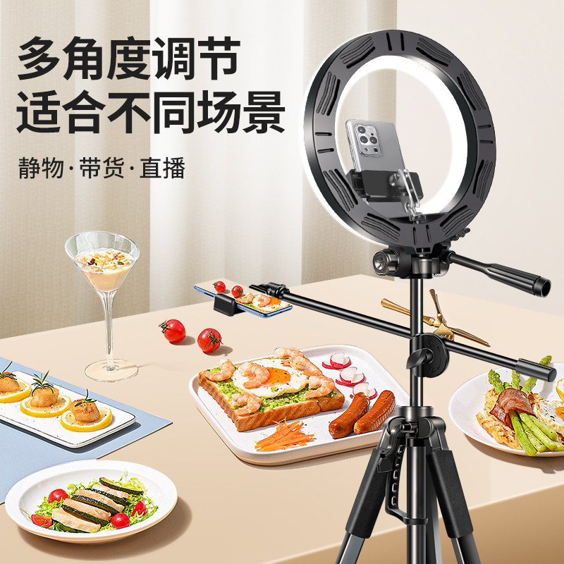 手机俯拍支架落地三脚架专业直播拍摄拍照自拍主播网红专用三角架子带补光灯可调节户外多功能万能通用支撑架