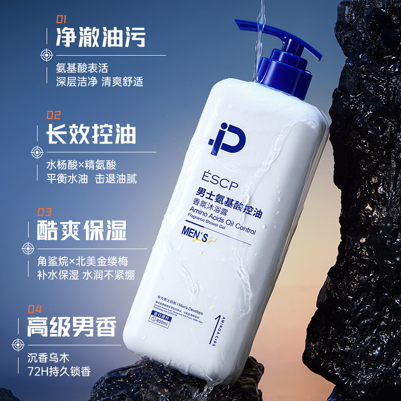 ESCP男士氨基酸控油香氛沐浴露800ml+赠沐浴球*1