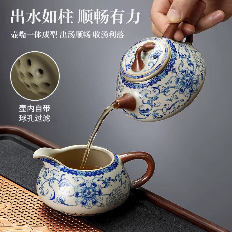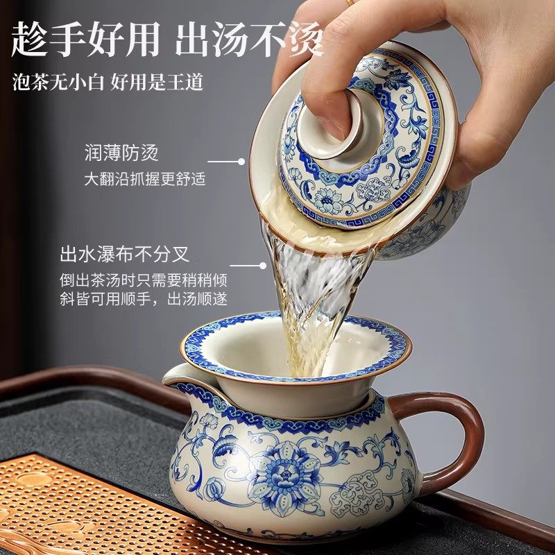 青花汝窑功夫茶具套装家用2025新款轻奢高档一套高端茶壶茶杯礼盒