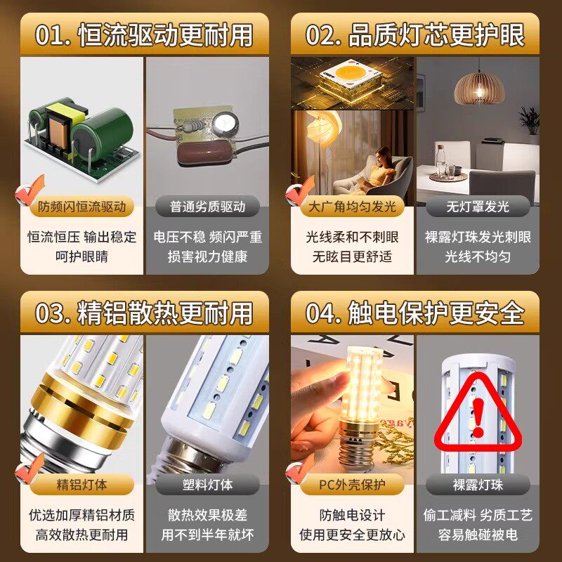LED节能灯泡超亮超大E14小螺口E27螺口家用吊灯玉米客厅三色室内