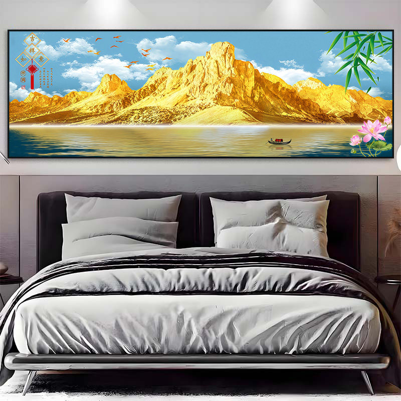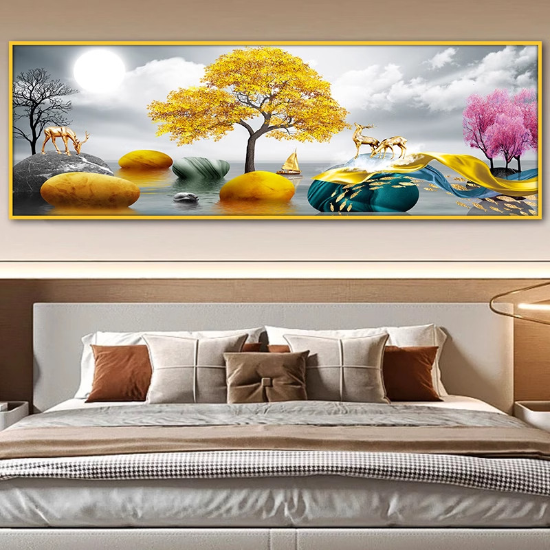 床头贴画装饰画客厅沙发背景自粘卧室墙贴3D现代风景轻奢山水墙纸