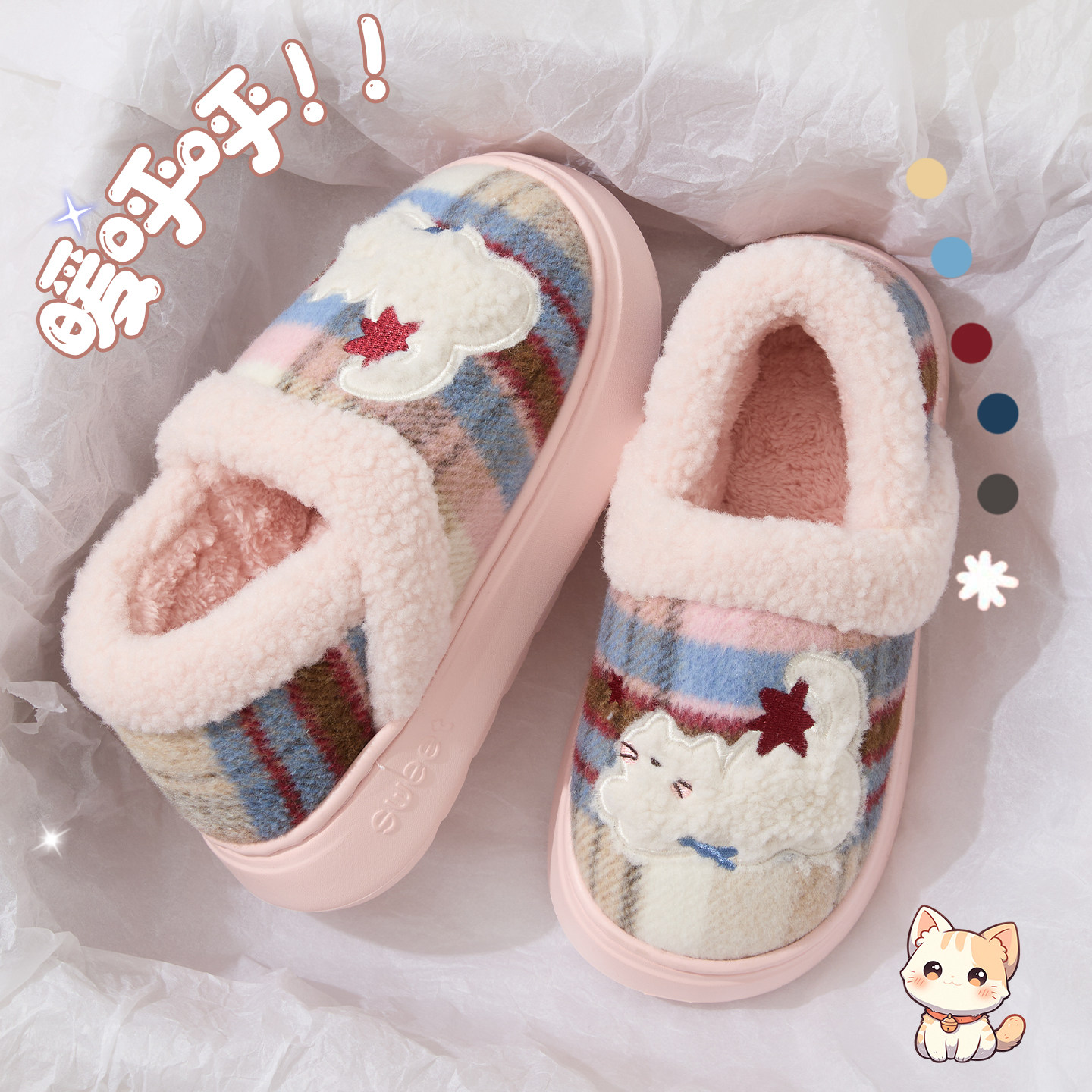 可爱棉拖鞋女款冬季2025新款室内居家居防滑保暖毛绒情侣棉鞋包跟