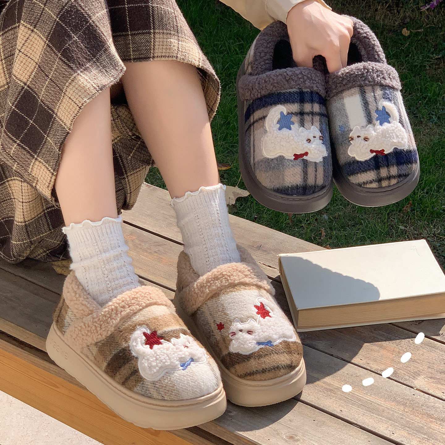 2026新款翻半包跟棉拖加绒保暖情侣外穿毛毛绒厚底防滑居家棉拖鞋