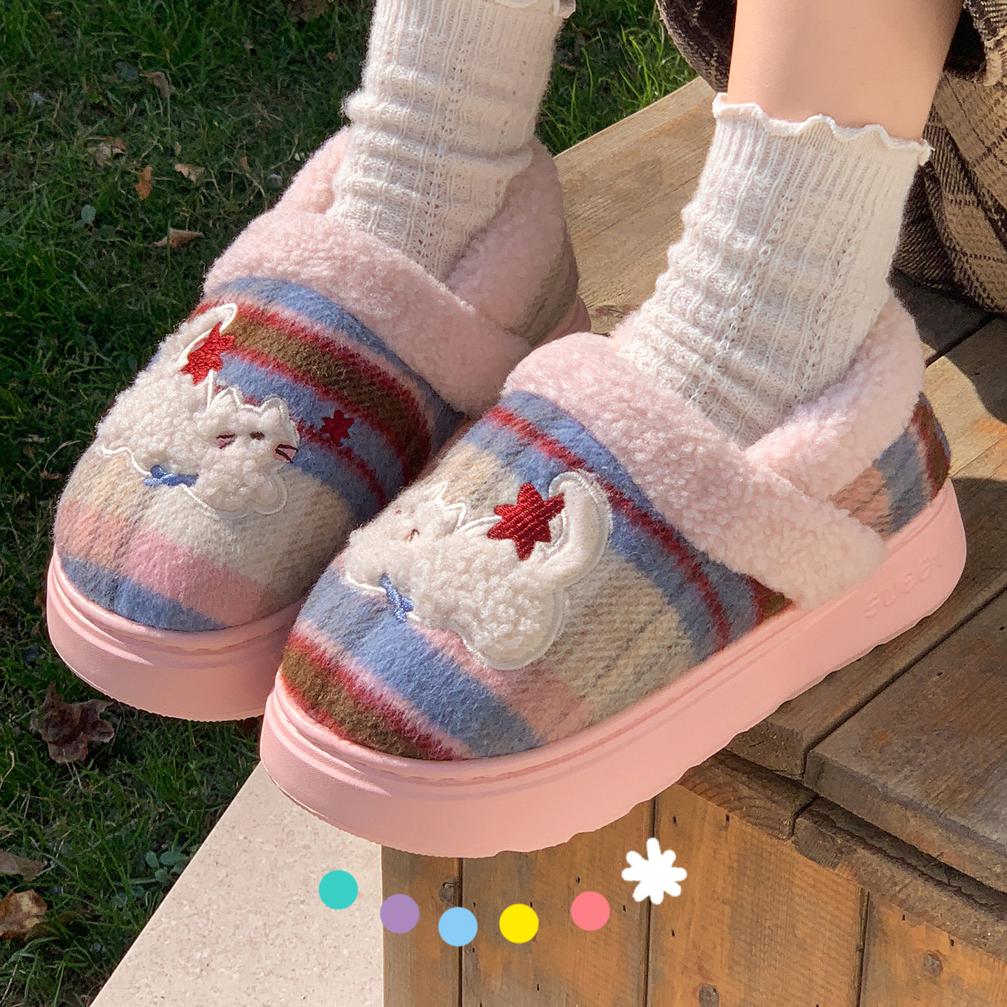 红豆踩屎感棉拖鞋女士秋冬季室内家居2025新款毛绒保暖情侣棉拖男