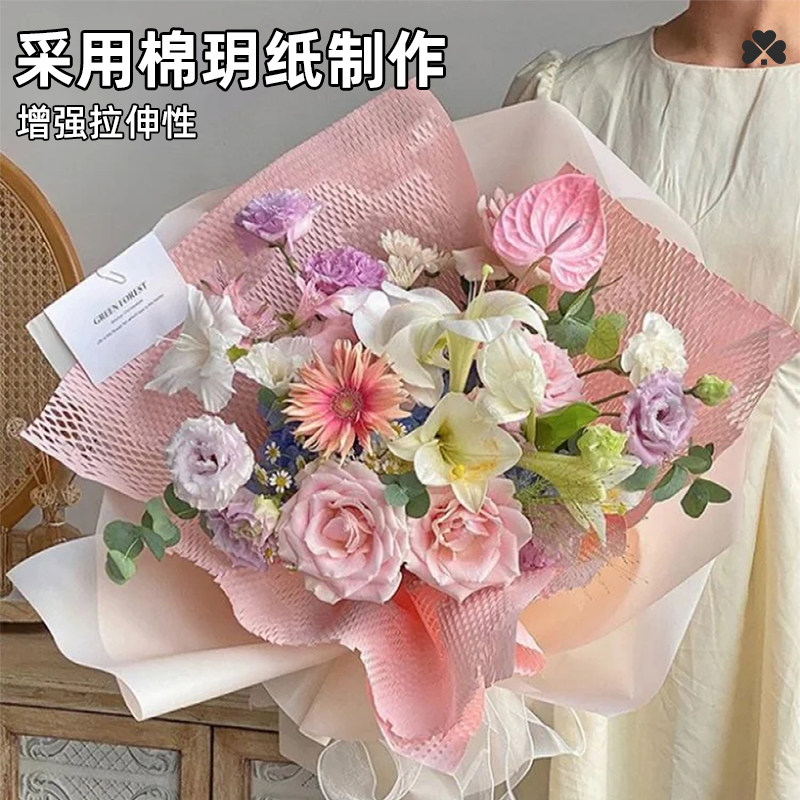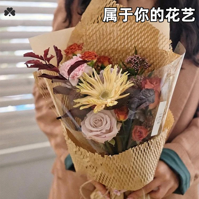 蜂窝纸包装花束生日礼物礼品打包材料牛皮网格白色绿大尺寸批发粉黑色环创鲜水果艺的纸卷高级感ins风鲜花