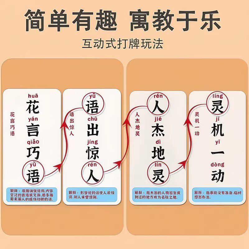 儿童成语接龙卡牌6-12岁益智亲子游戏卡片扑克牌小学生成句卡互动