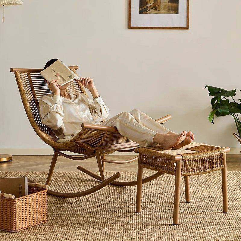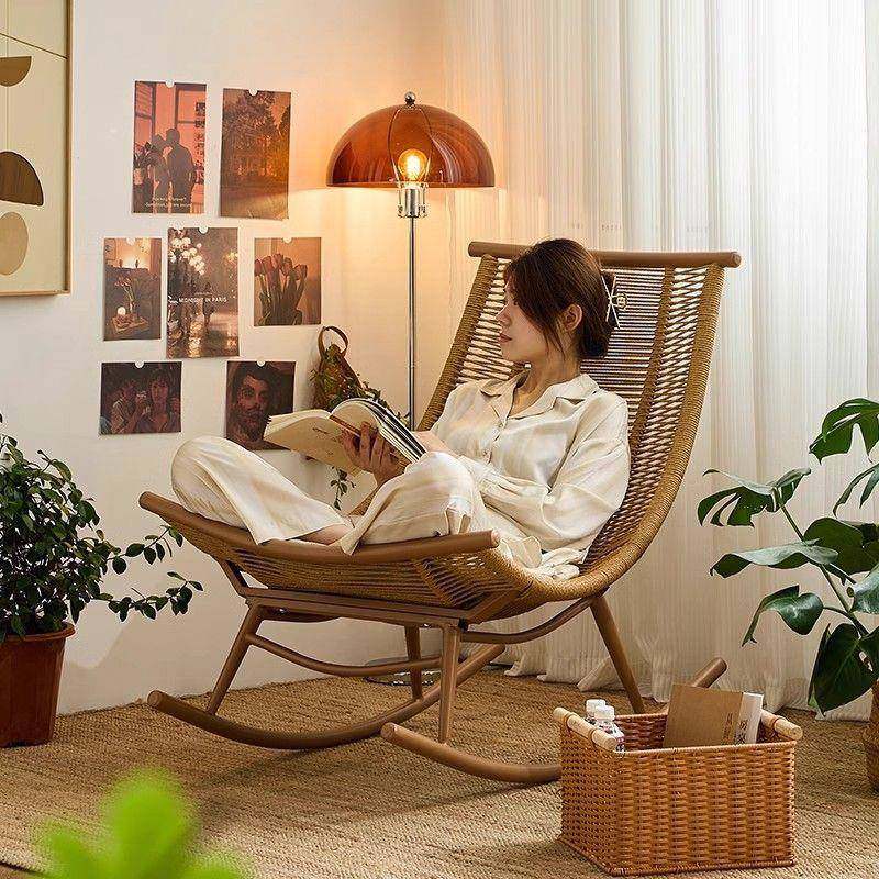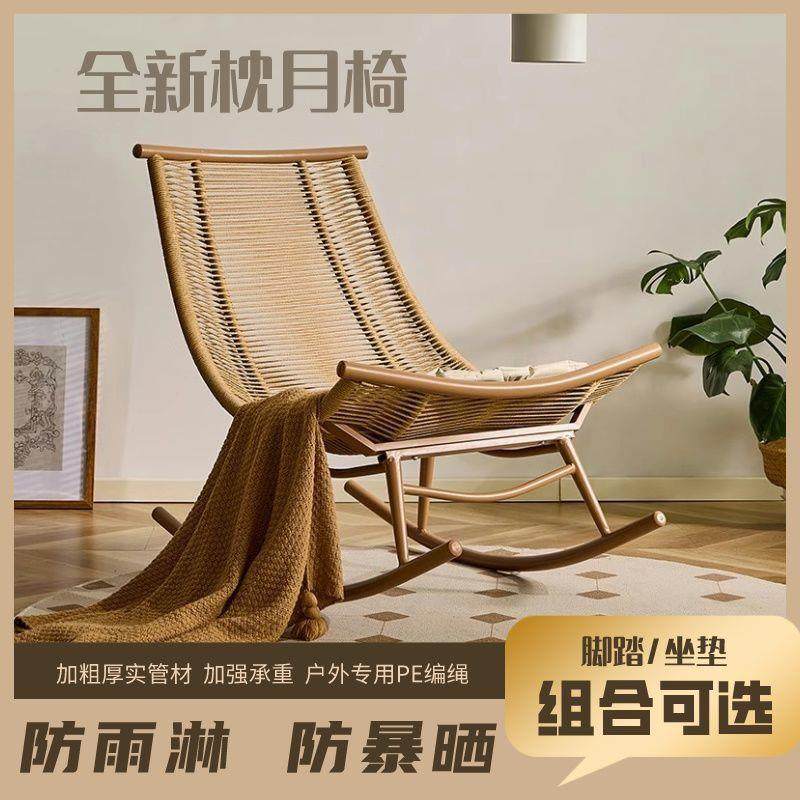 户外摇椅阳台摇摇椅家用小户型躺椅休闲懒人沙发藤防雨编月亮椅子