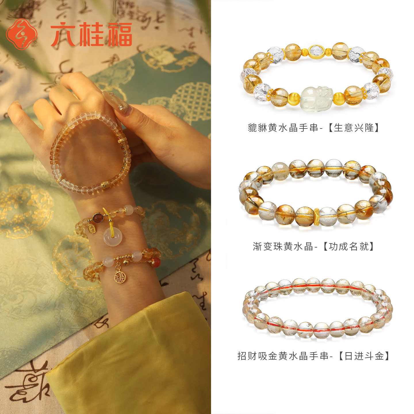 六桂福珠宝纯天然黄水晶招财手串女绝美手饰冰种转运新年礼物手链