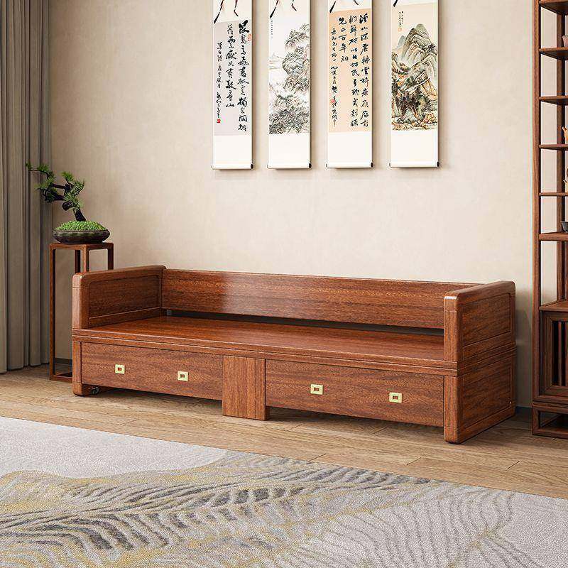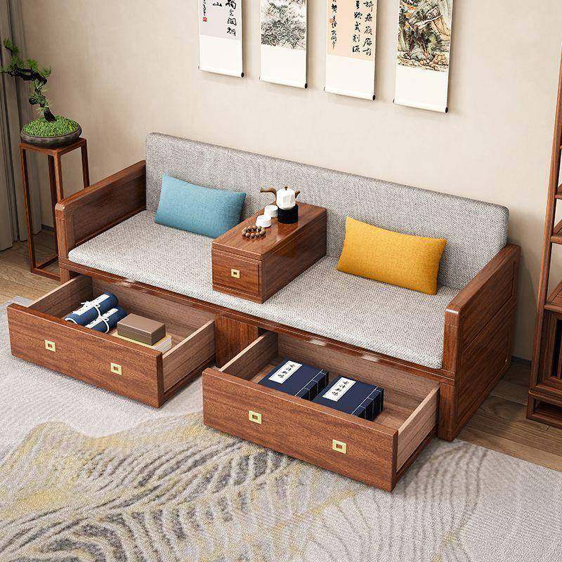 新中式实木带抽屉推拉伸缩折叠沙发床多功能客厅小户型两用沙发床