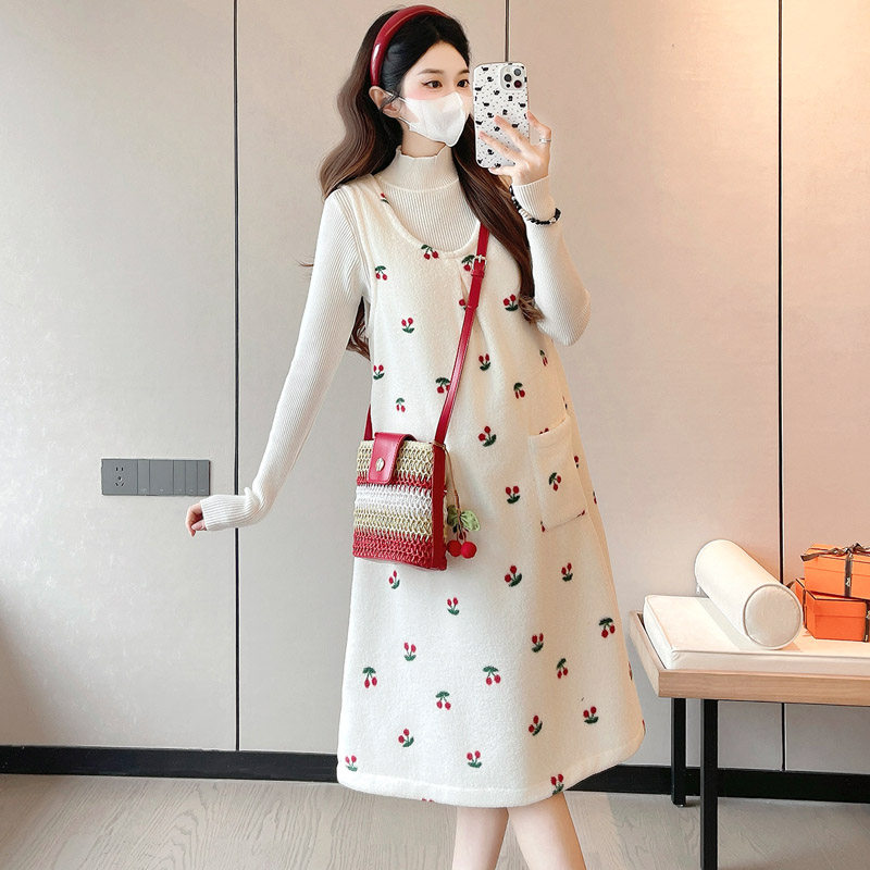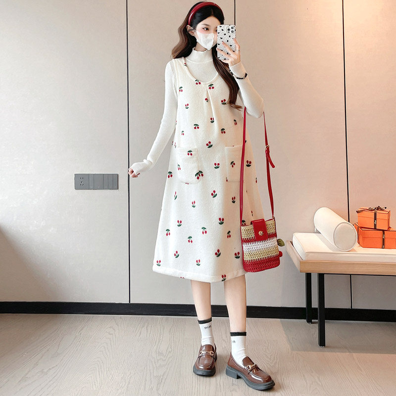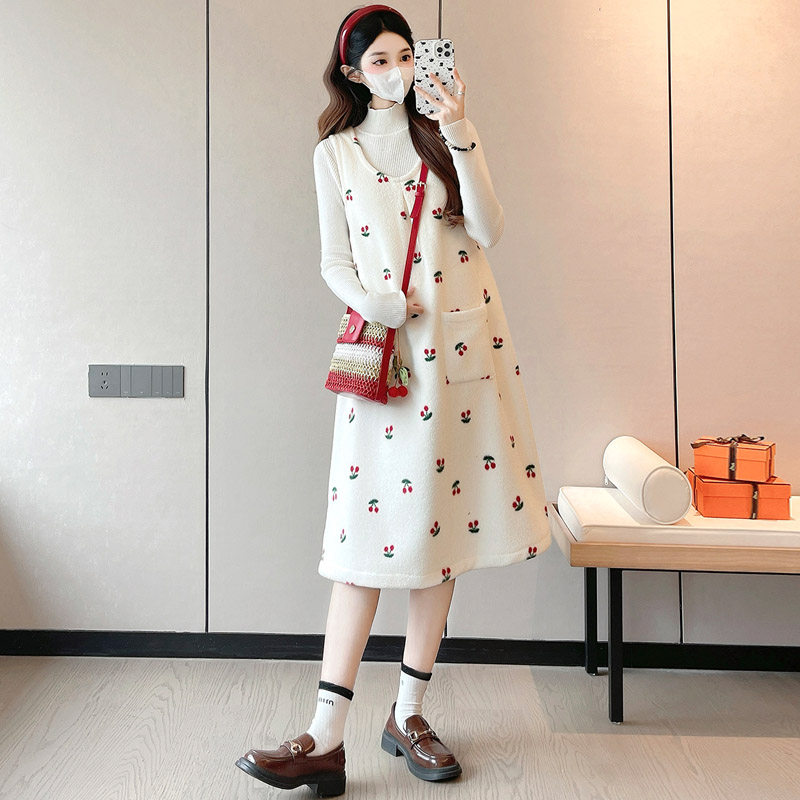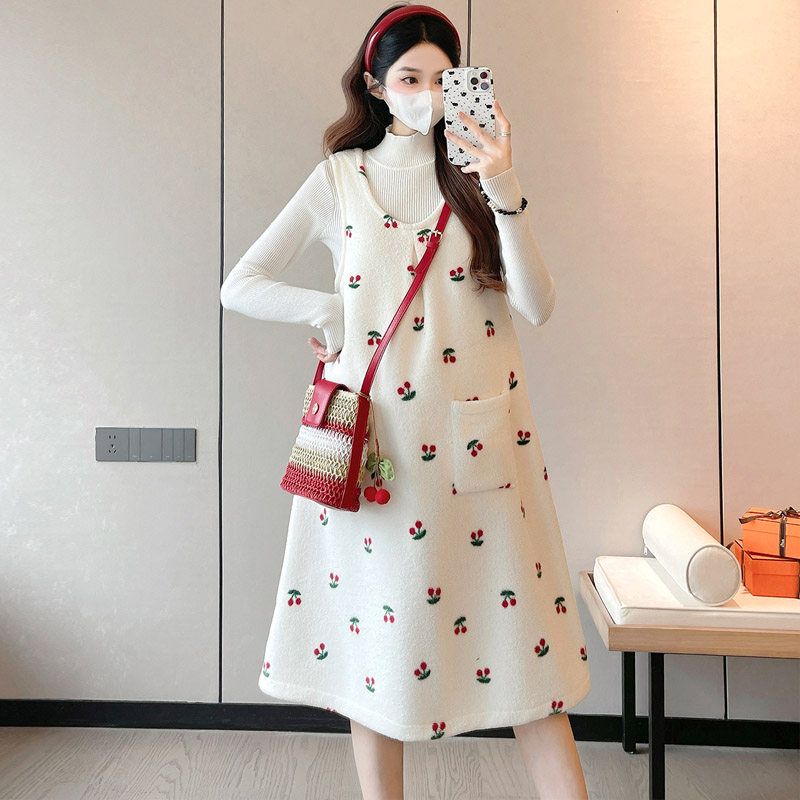 婧麒孕妇连衣裙孕妇装新款毛衣打底孕期樱桃卡通图案孕妇裙子冬装