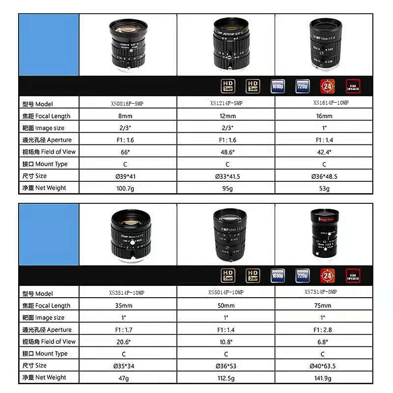 工业镜头变焦定焦可选1英寸2/3"1/2"C口工业相机配件机器视觉镜头