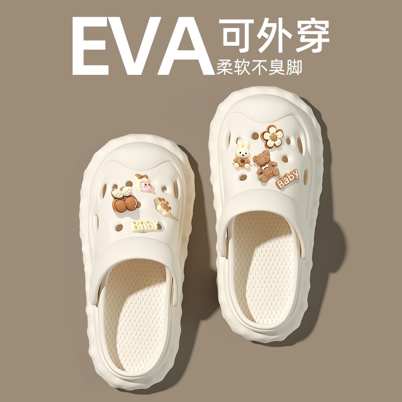 孕妇可穿洞洞鞋女士踩屎感外穿夏季厚底防滑居家包头凉拖鞋女学生