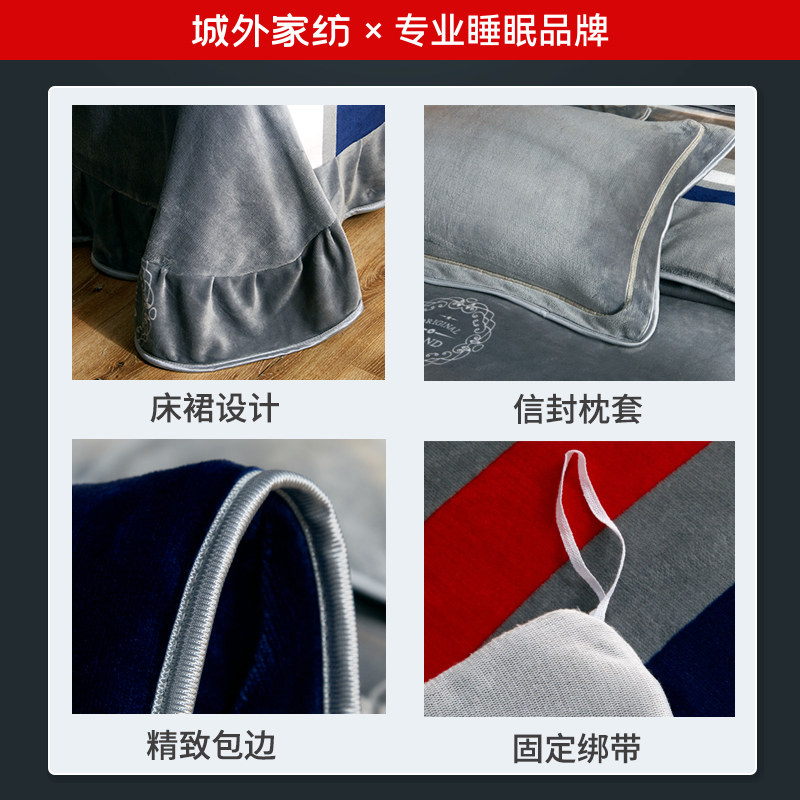 洁丽雅牛奶绒四件套冬季珊瑚绒被套床单加绒毛绒法兰绒床上三件套
