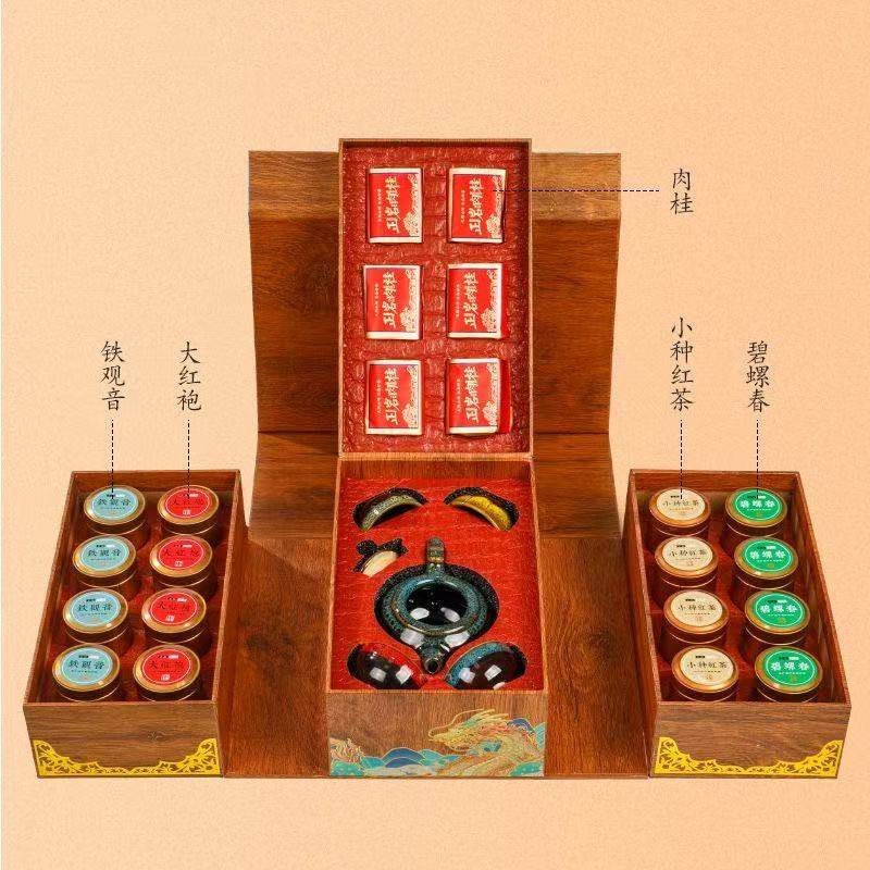 【五大茗茶】碧螺春铁观音大红袍小种红茶肉桂茶礼盒装带茶具