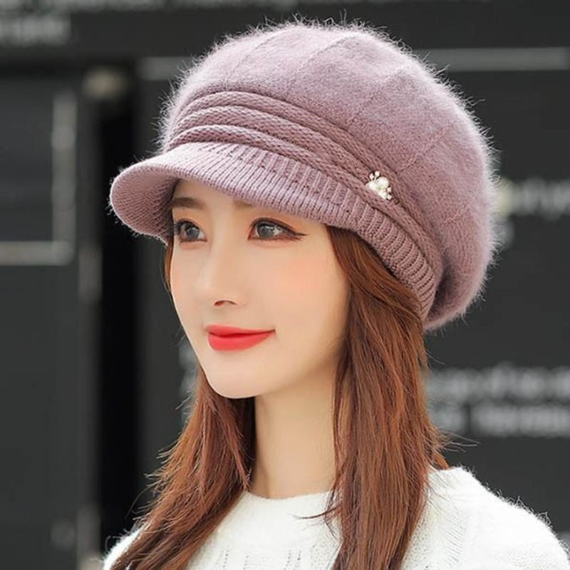 帽子女秋冬天加绒加厚护耳保暖帽鸭舌贝雷帽针织帽兔毛帽毛八角