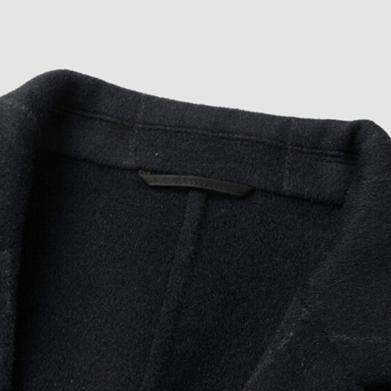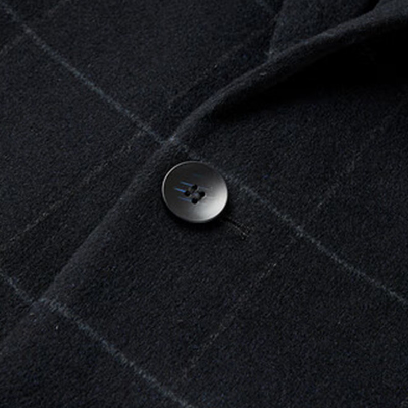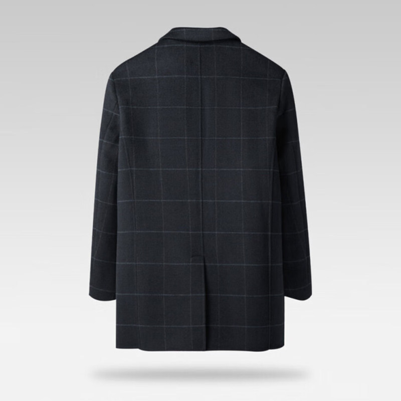 品牌撤柜秋冬季男士时尚西装领含绵羊毛格子手工双面呢大衣外套