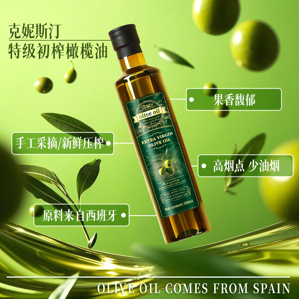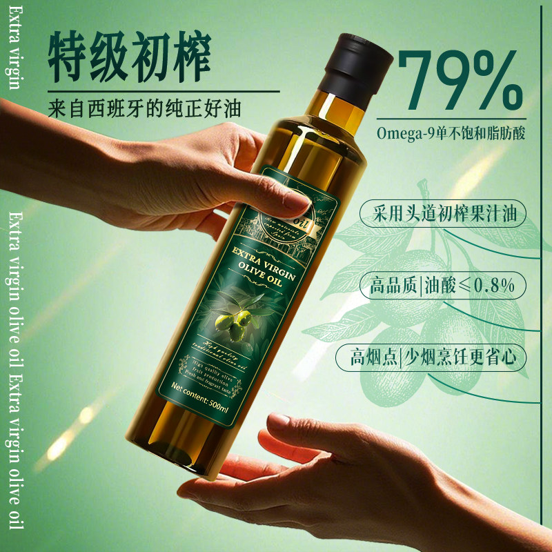 特级初榨纯正橄榄油500ml低温高油酸烹饪家用炒菜低烘焙健康正品