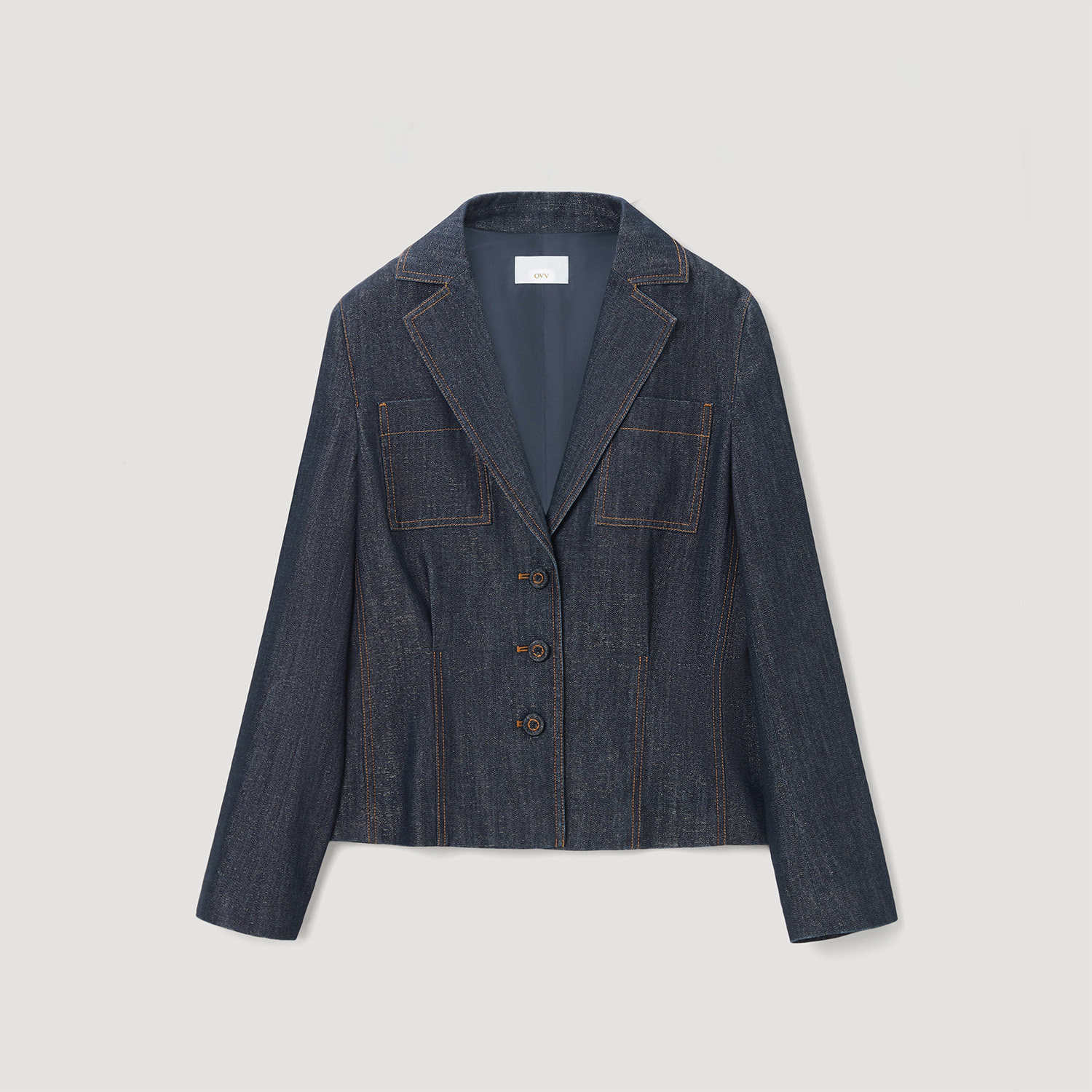 OVV秋冬新款女装意大利进口休闲平驳领牛仔单件西服外套
