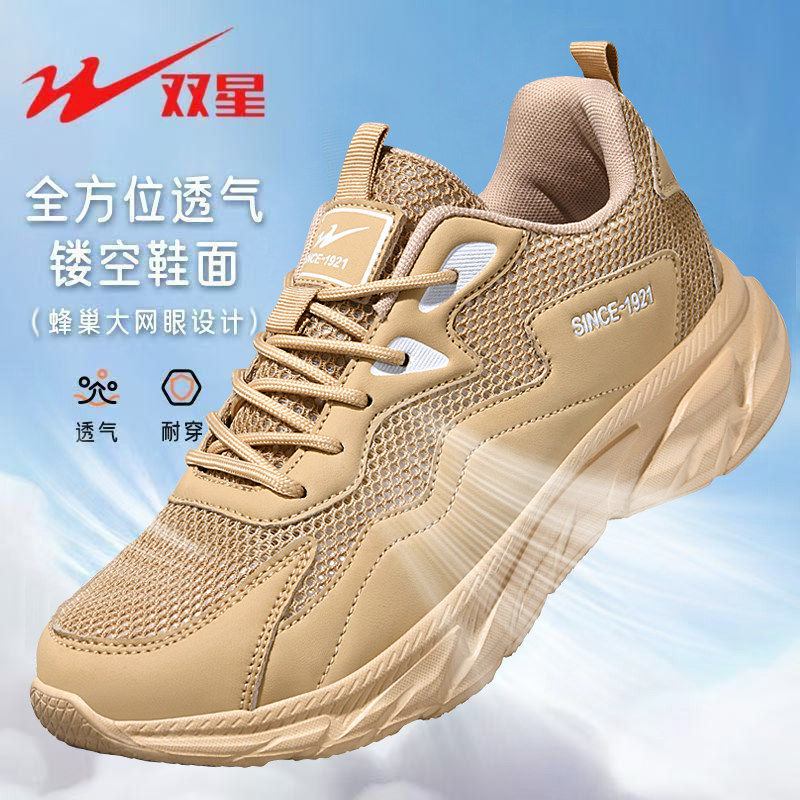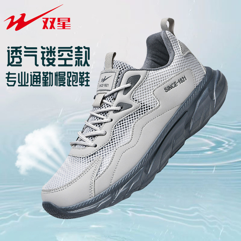 双星大码男鞋2026新款春季网面透气薄款网鞋男士运动休闲软底黑色