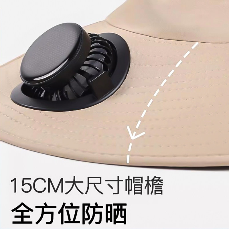 2026新款太阳能风扇帽子大帽檐防紫外线遮阳渔夫帽户外钓鱼防晒帽