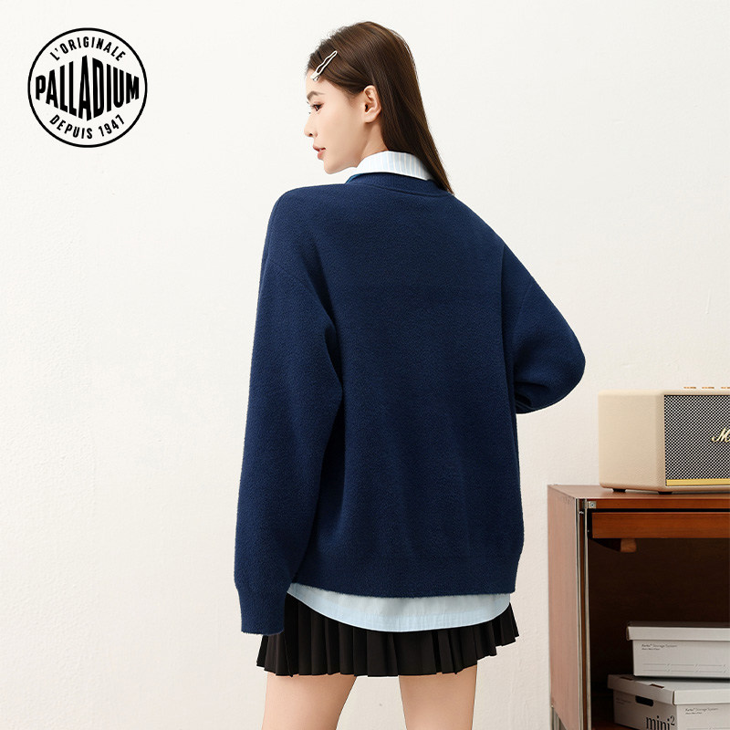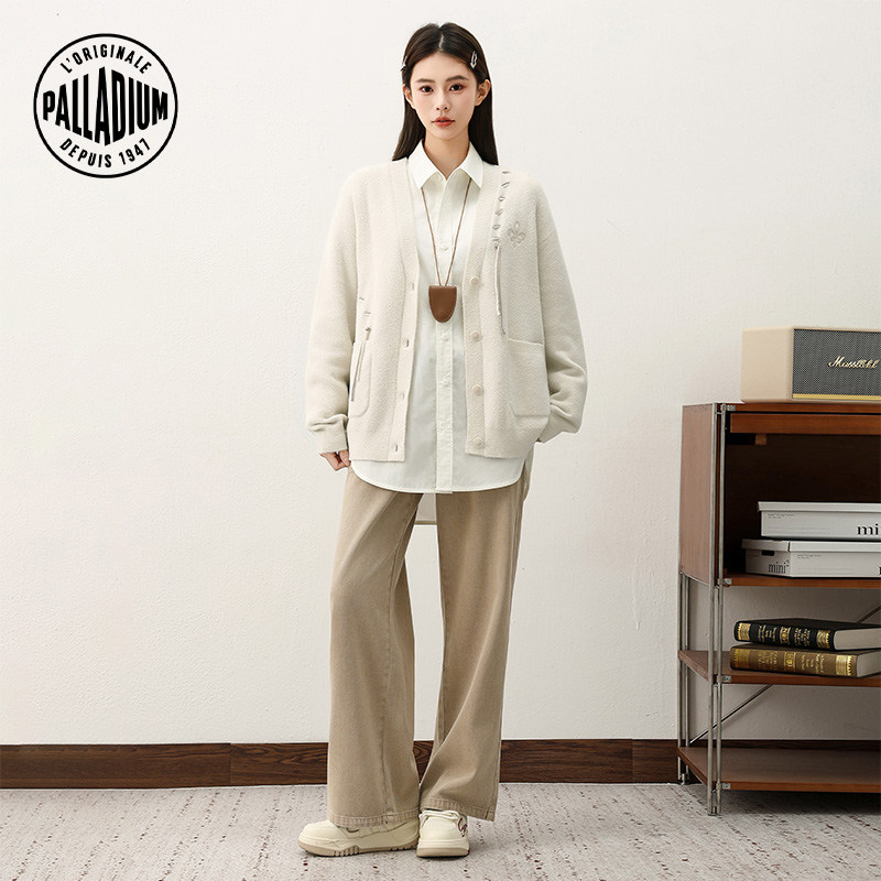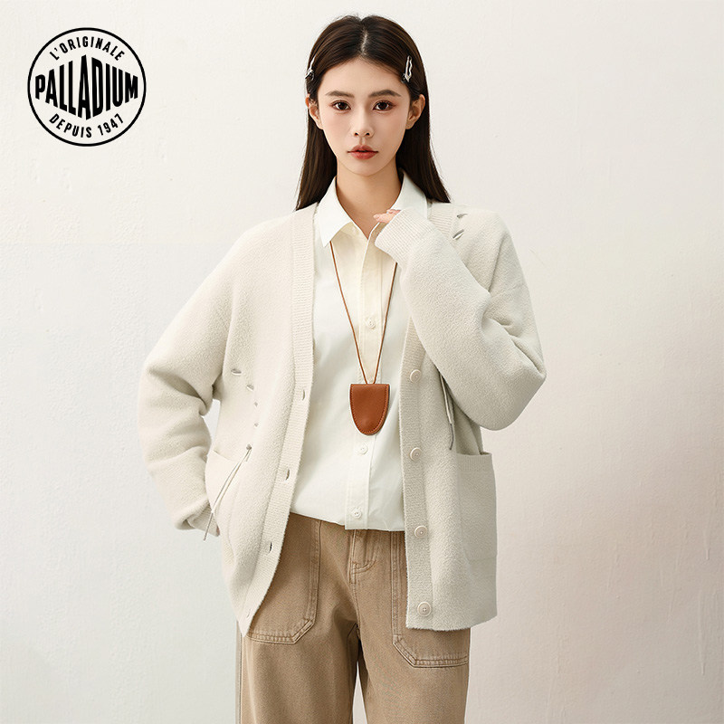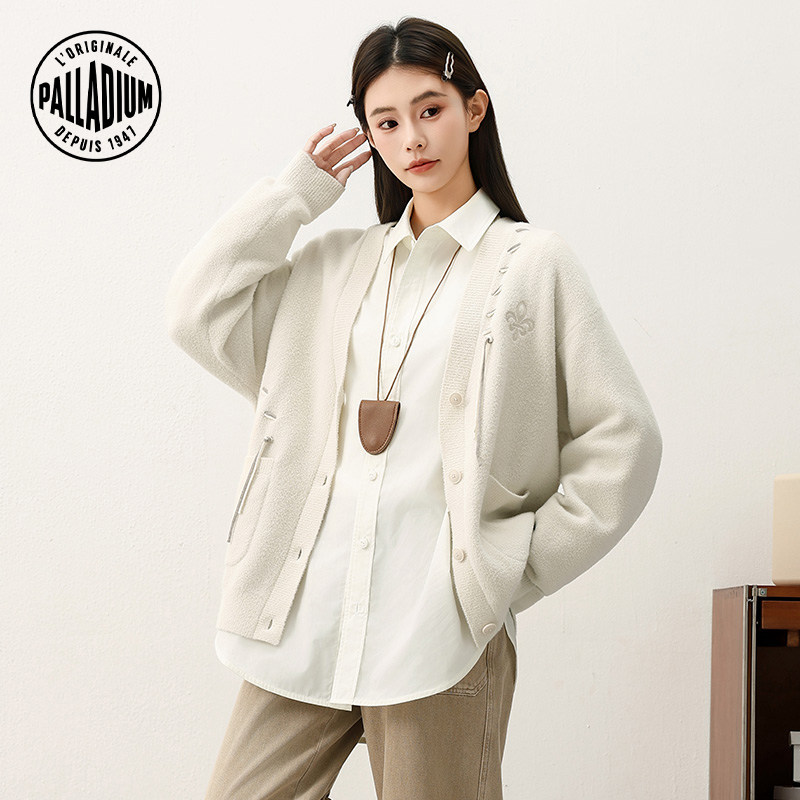 PALLADIUM帕拉丁上装撞色立体锁链绣女款开襟毛衫1913660