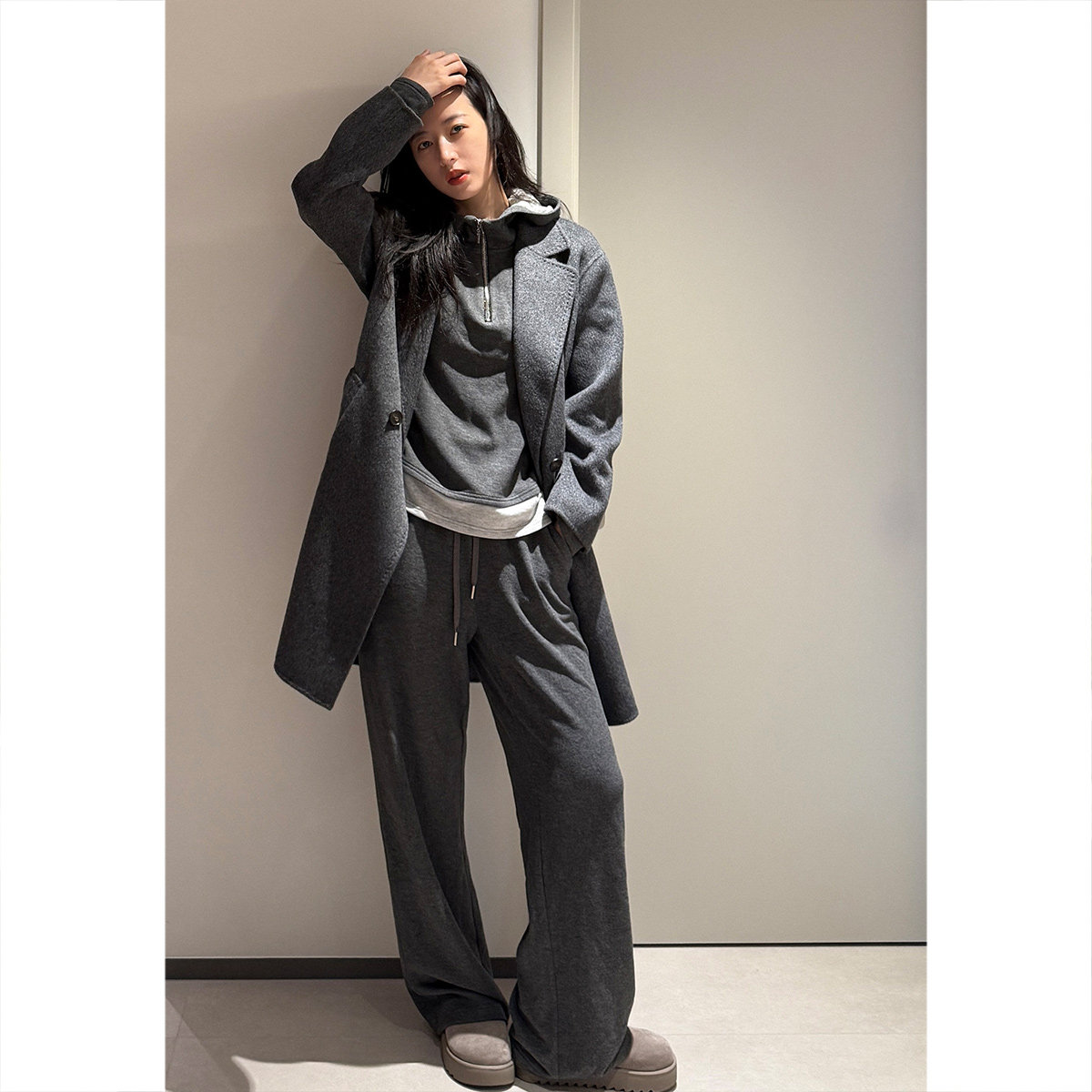 杨幂同款SIINSIIN2025新款白色加绒直筒裤女冬季厚显瘦运动小个子