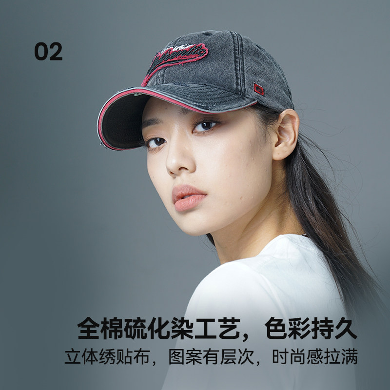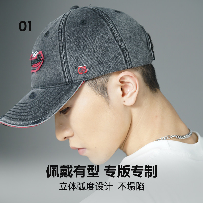 力可派男士潮牌时尚软顶棒球帽水洗做旧牛仔帽刺绣宽檐复古鸭舌帽