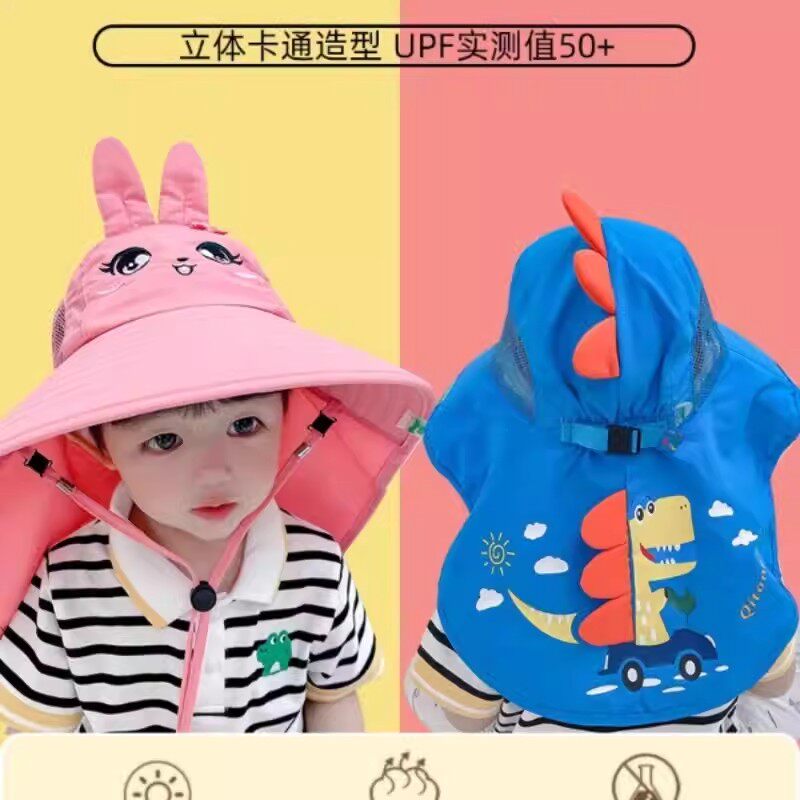 儿童防晒帽男孩女童大帽檐防紫外线太阳帽巨好看的宝宝帽子遮阳帽