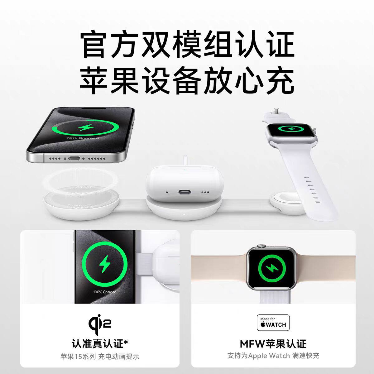 Anker安克三合一小飞碟适用苹果16无线充电器MFW认证Qi2iPhone16/15手机iwatch手表14airpods耳机Magsafe磁吸