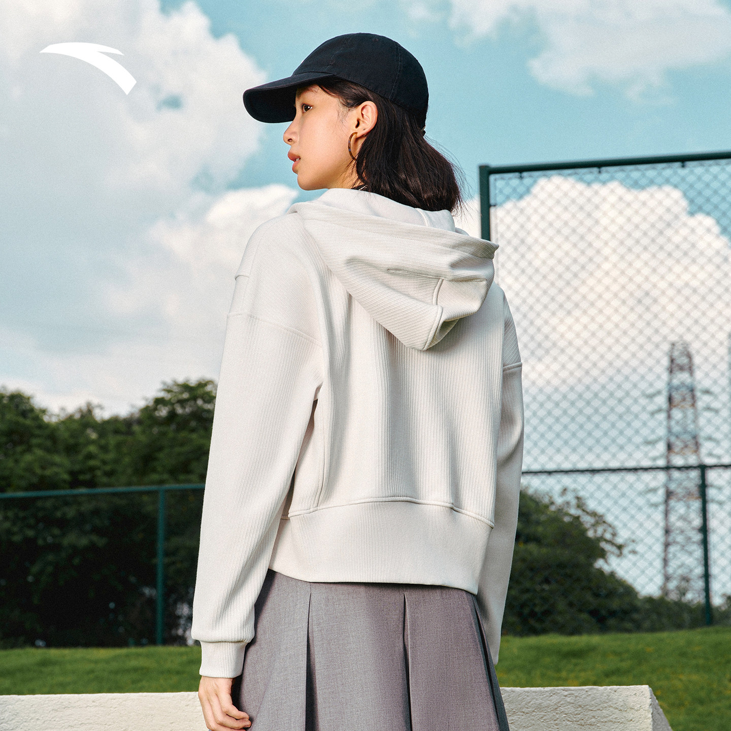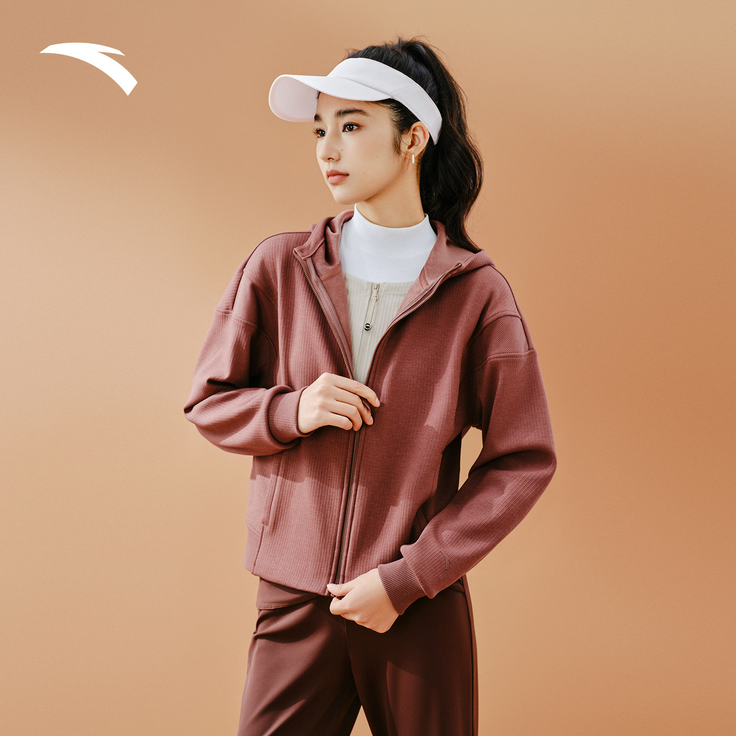 安踏肌理感休闲外套女士冬季新款加绒开衫卫衣运动上衣162547707N