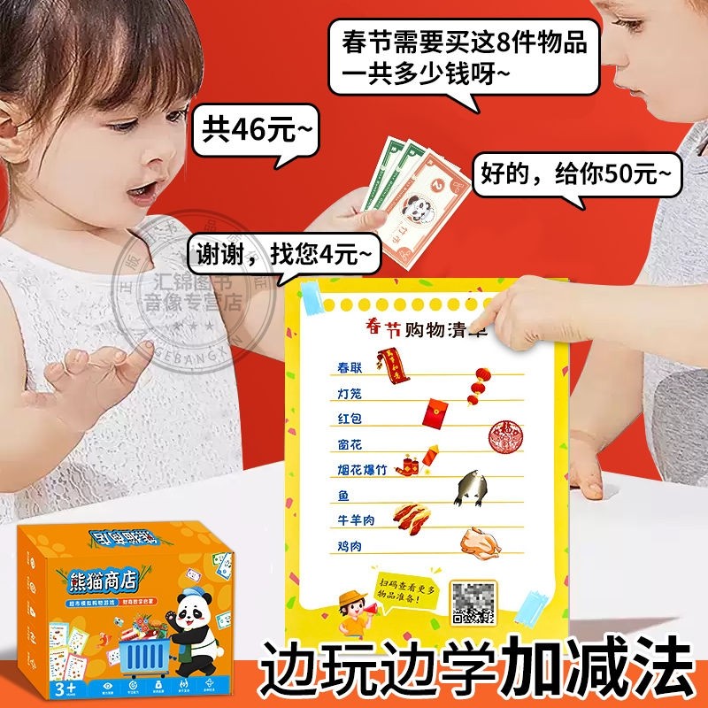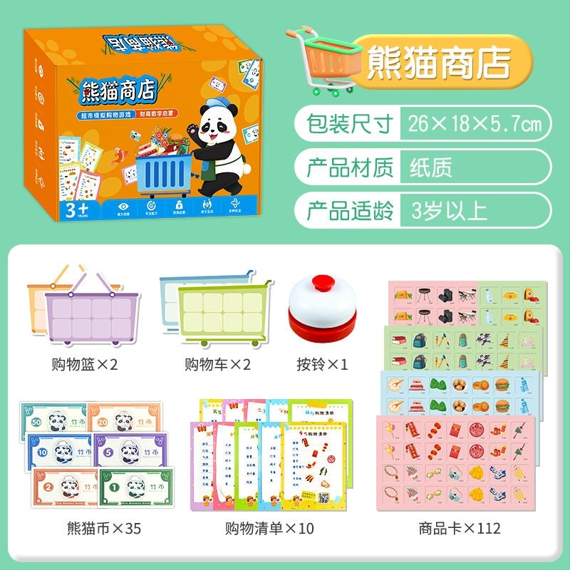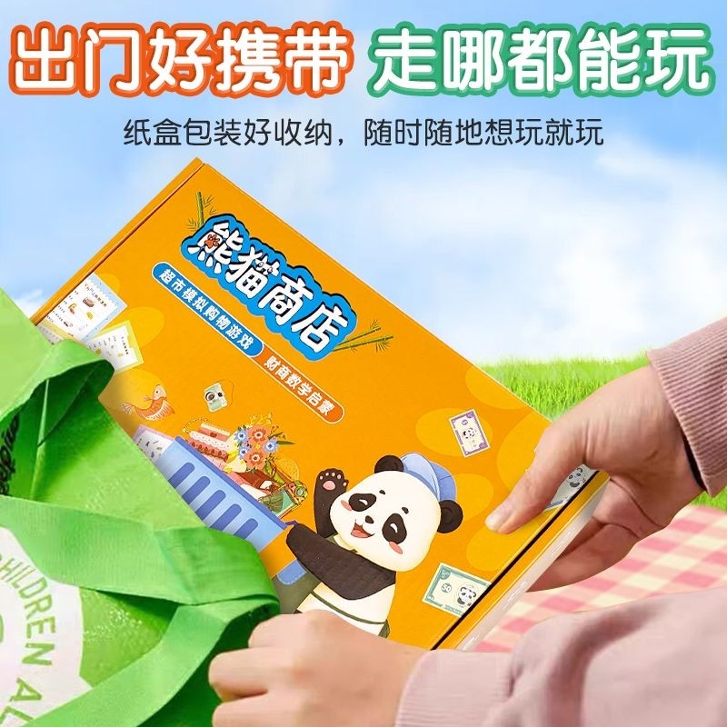 3-10岁熊猫超市模拟经营桌游反应力训练数学启蒙益智玩具商店购物财商亲子游戏加减法安静书思维立体认知准备动物计算能力手工新年