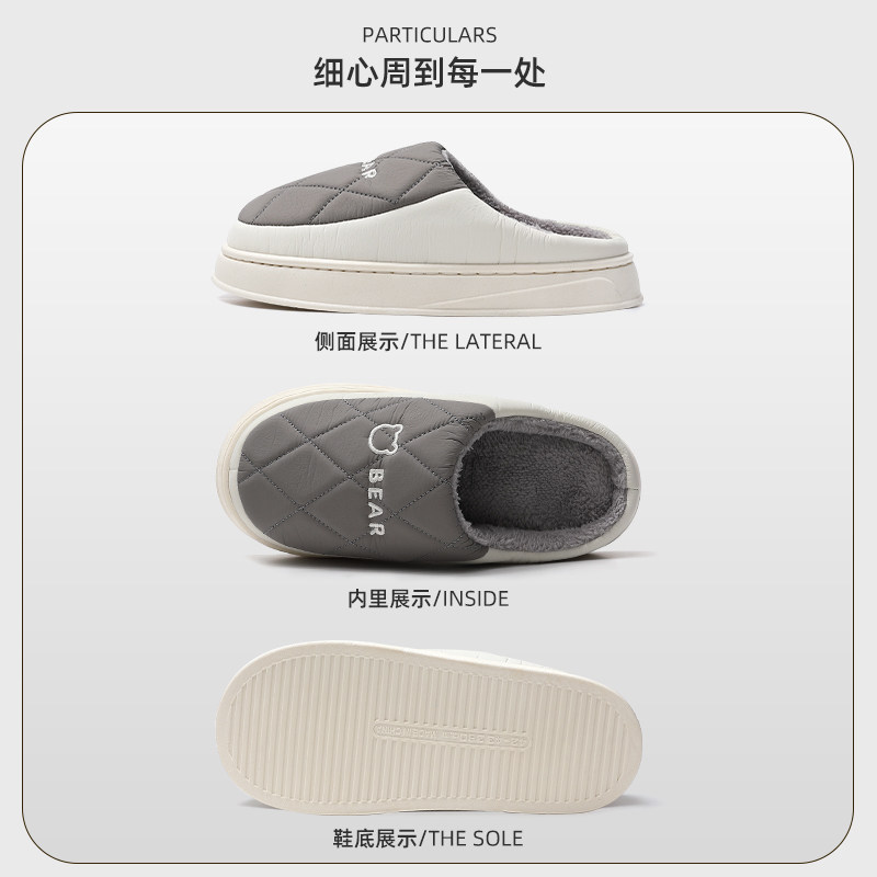 朴西棉拖鞋女士秋冬季厚底简约保暖室内居家用软底防滑情侣棉拖男