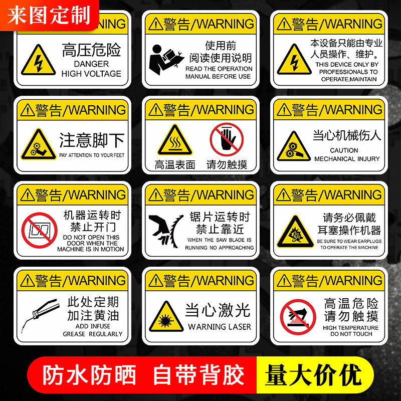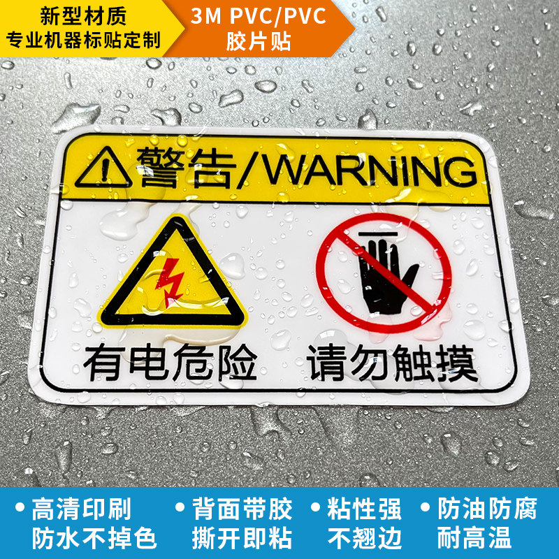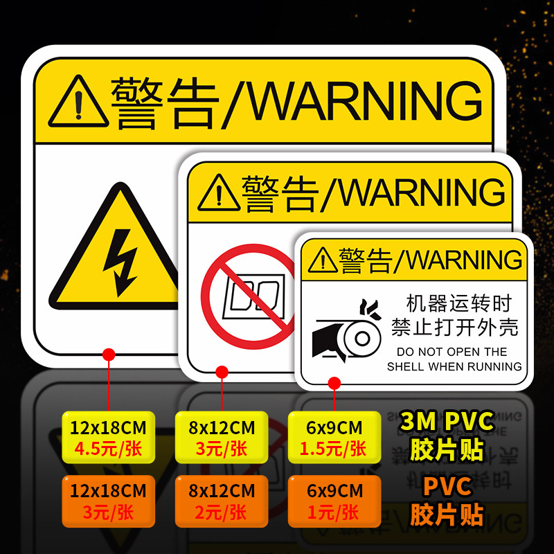 CNC设备安全警示标识牌贴当心触电注意安全不干胶标签标志PVC贴纸